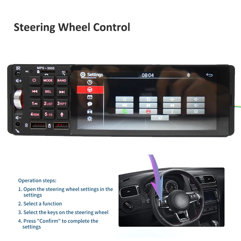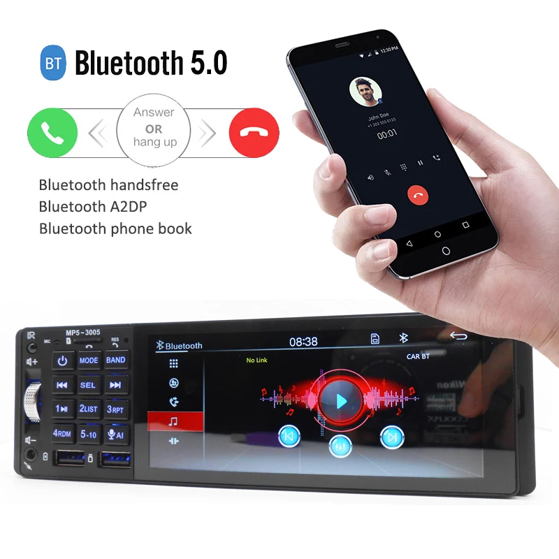 1 Din Bluetooth Car Radio Mirror Link HD MP5 Video Player Handsfree A2DP Audio USB TF 5 Inch Touch Screen Head Unit PHYEE 3005