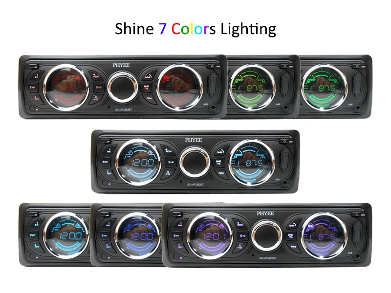 1 Din Removable Panel Car Radio RDS Bluetooth Handsfree Dual Screens FM Stereo Receiver MP3 Player 7 Colors Lighting Head Unit