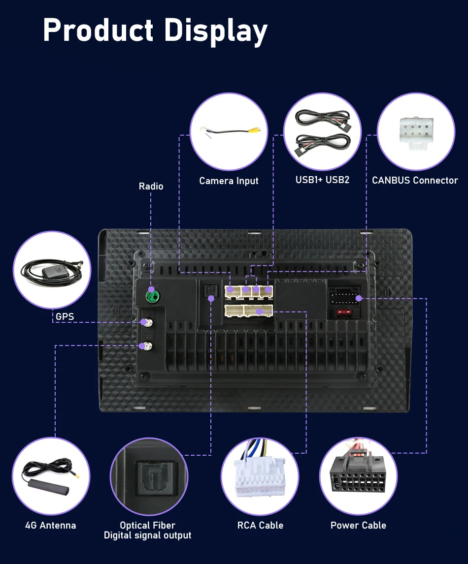 Supports reverse display. When the car is in the reverse mode, the radio will instantly switch to the screen at the back of the car to ensure your driving safety.