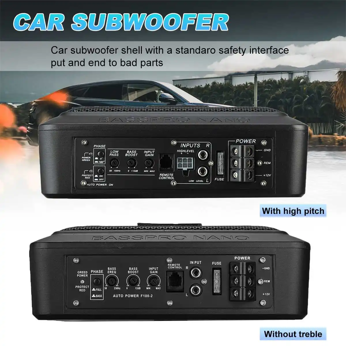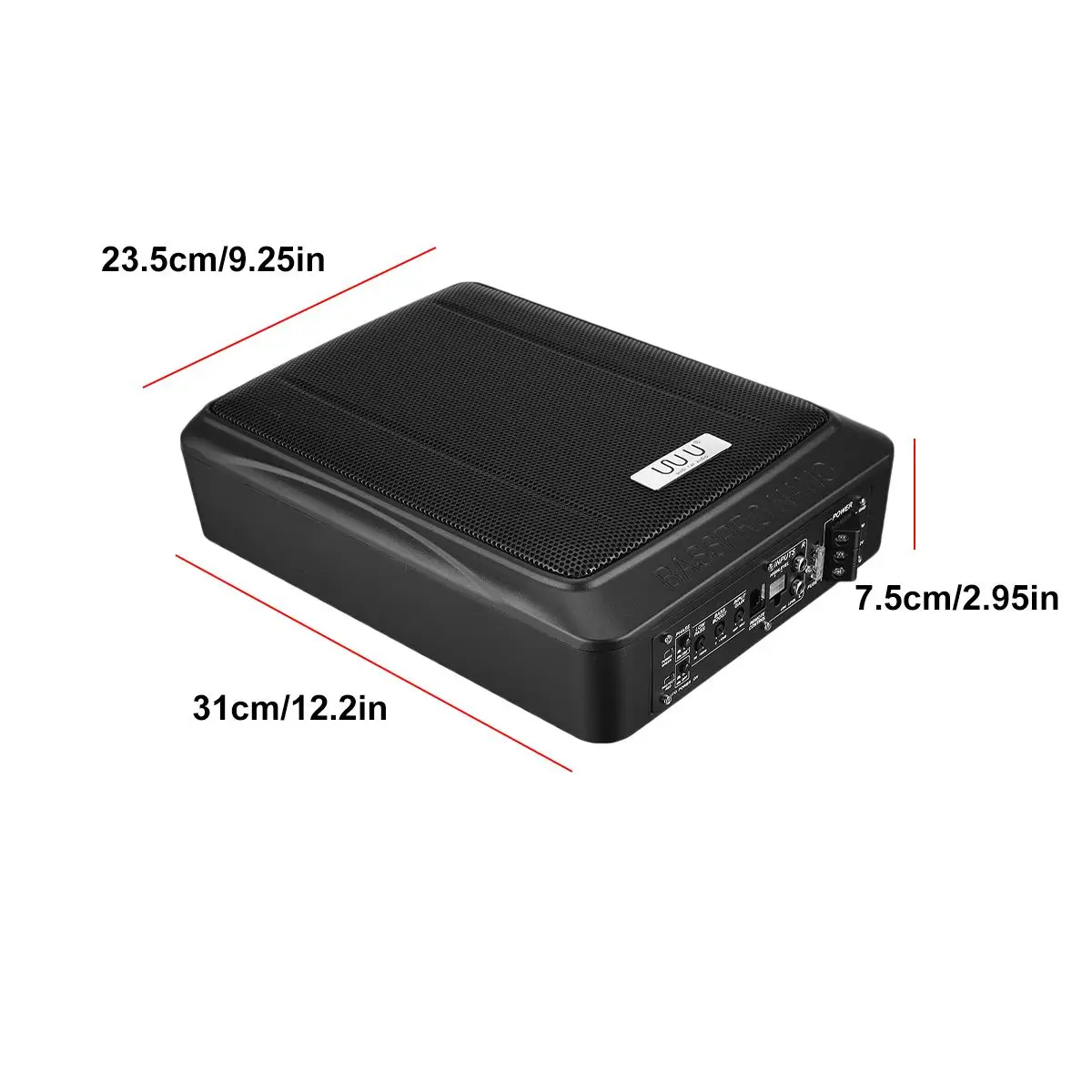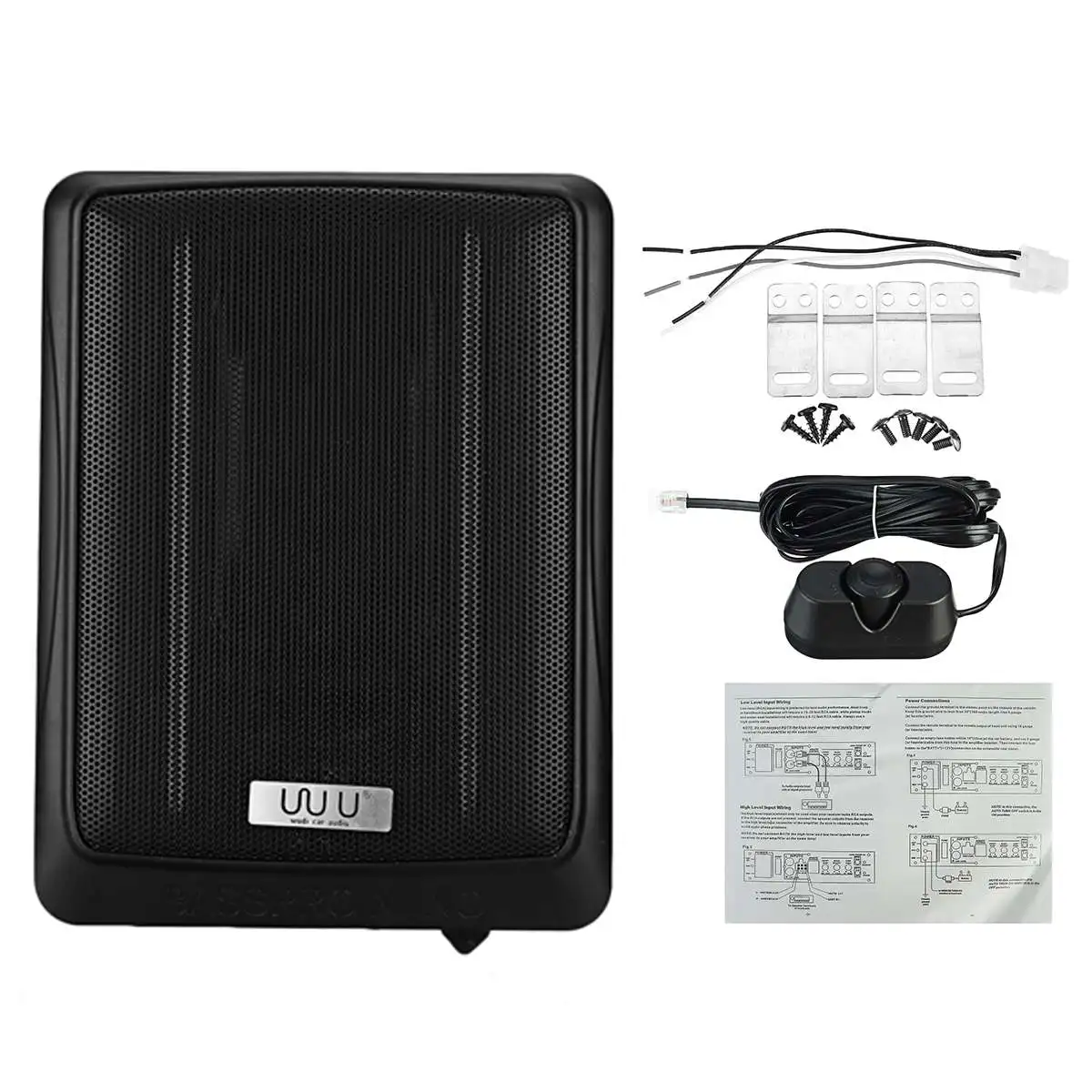 Package Included: 1 x Car subwoofer 9 x Screw accessories 4 x Fixing accessories 1 x Fuse 1 x Remote control 1 x Manual Notes: 1. Due to manual measurement, please allow a difference of 0.5-1cm. 2. Due to the difference of light and screen, the color of the product may be slightly different from the picture. |