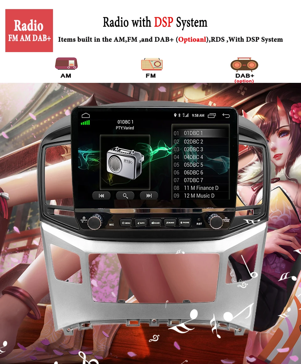 Radio with RDS ,built in the FM AM and supprot connect with the DAB+,the DSP system will offer quality stereo music and voice for your need.