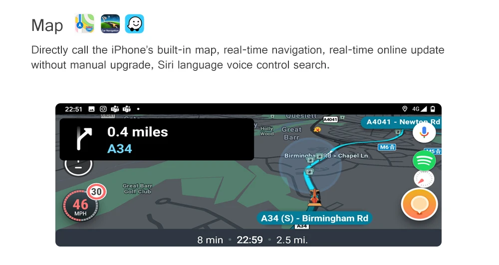 10. The head unit is with a Built-in microphone and supports Siri and Google Assistant either via voice keyword ('Hey Siri' / 'Okay Google') or by long-pressing the steering wheel voice button.