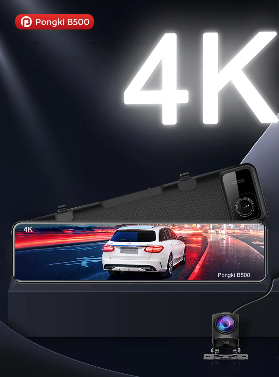 12 Inch Full Screen Pongki Rearview Dash Cam Wide 2160p Auto Cam B500 Rear View Mirror Car Recorder Stream Media Car DVR Cam