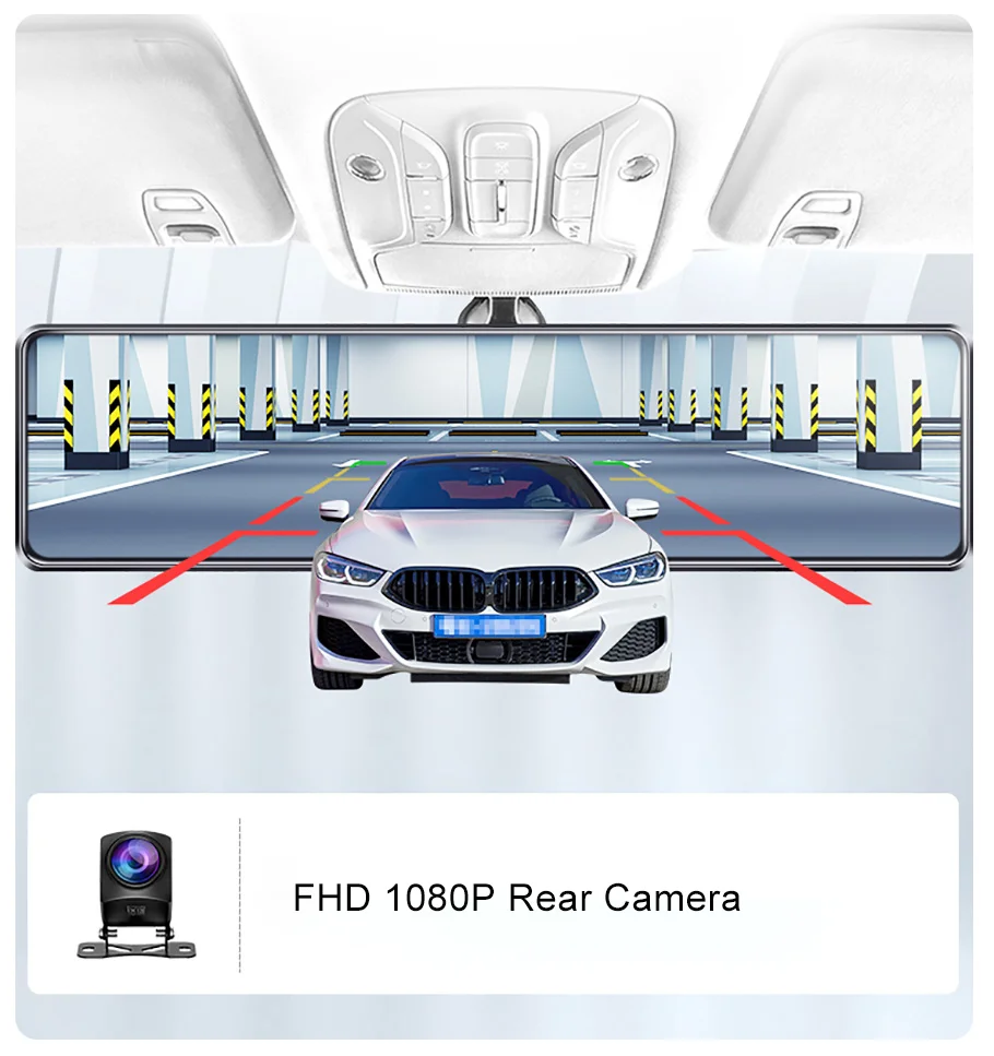 When reverse gear is engaged, the rearview mirror screen automatically switches the reversing image and displays the auxiliary line, make blind spots all visible when reversing and warehousing.