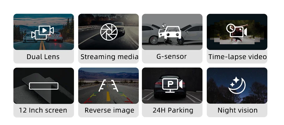 12 Inch 170° ultra wide-angle full view touch screen provides crystal image without any delay and reduce blind spots. Compared with other screens, bigger, clearer.