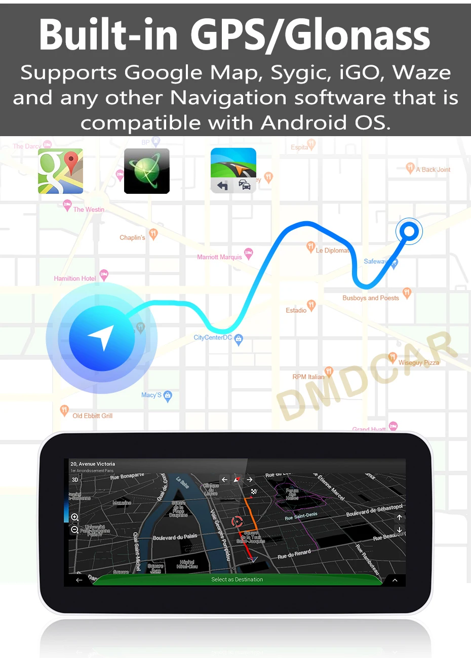 >>>Built-in GPS/GLONASS. Supports Google map, Waze, iGo, Navitel, Sygic, etc, Enjoy all your travels worldwide, and no need to worry about getting lost.