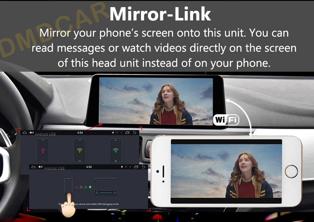 >>>Supports smartphone mirror-link connection (for both IOS and android phones). You can connect your iPhone wirelessly or Android smartphone via USB cable to access some of your favorite apps directly on the car dash.