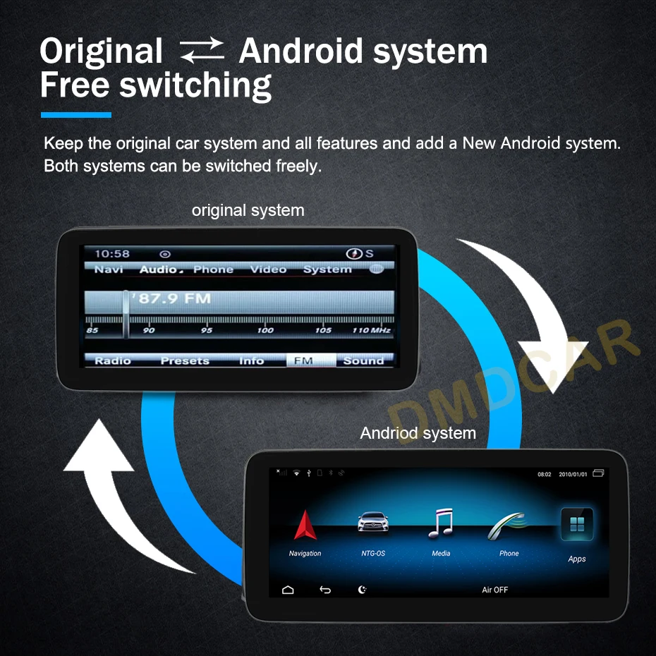 >>>Keep the original car's system and all features, and add a new android system to your car. Both systems can be switched freely.