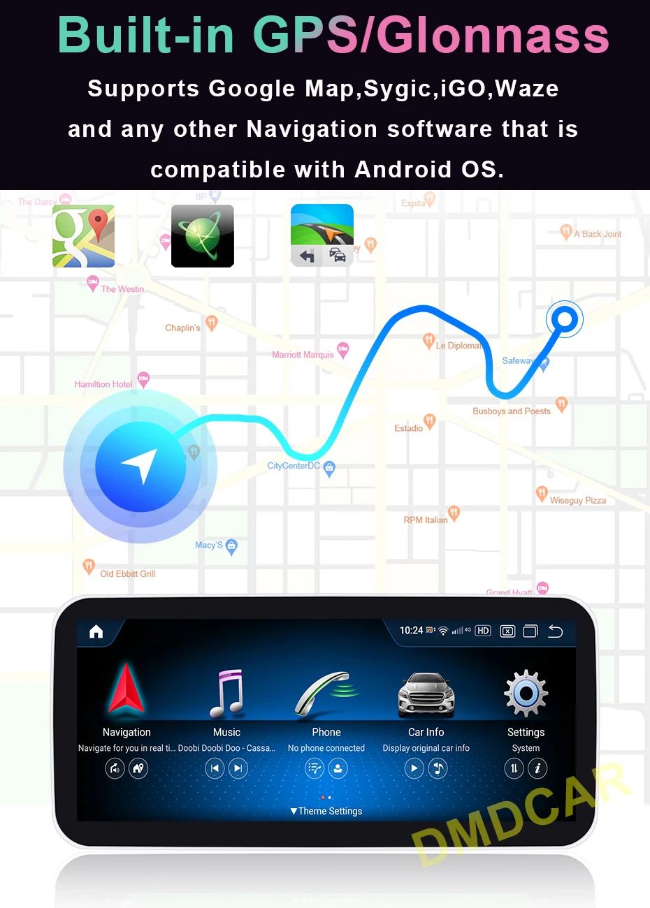Built-in GPS/GLONASS. Supports Google map, Waze, iGo, Navitel, Sygic, etc, Enjoy all your travels worldwide, and no need to worry about getting lost.