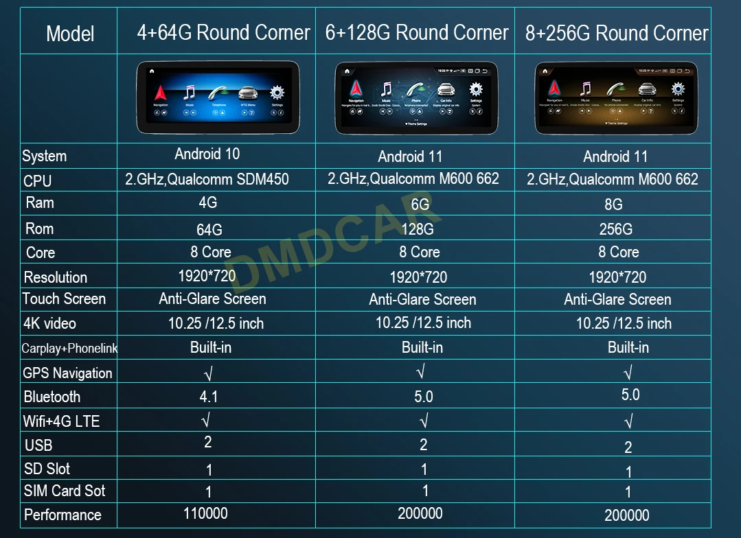 - Qualcomm MSM 8953 Snapdragon 662 8Core CPU, up to 2.0ghz, DDR3 8G RAM, 256G ROM (Optional)