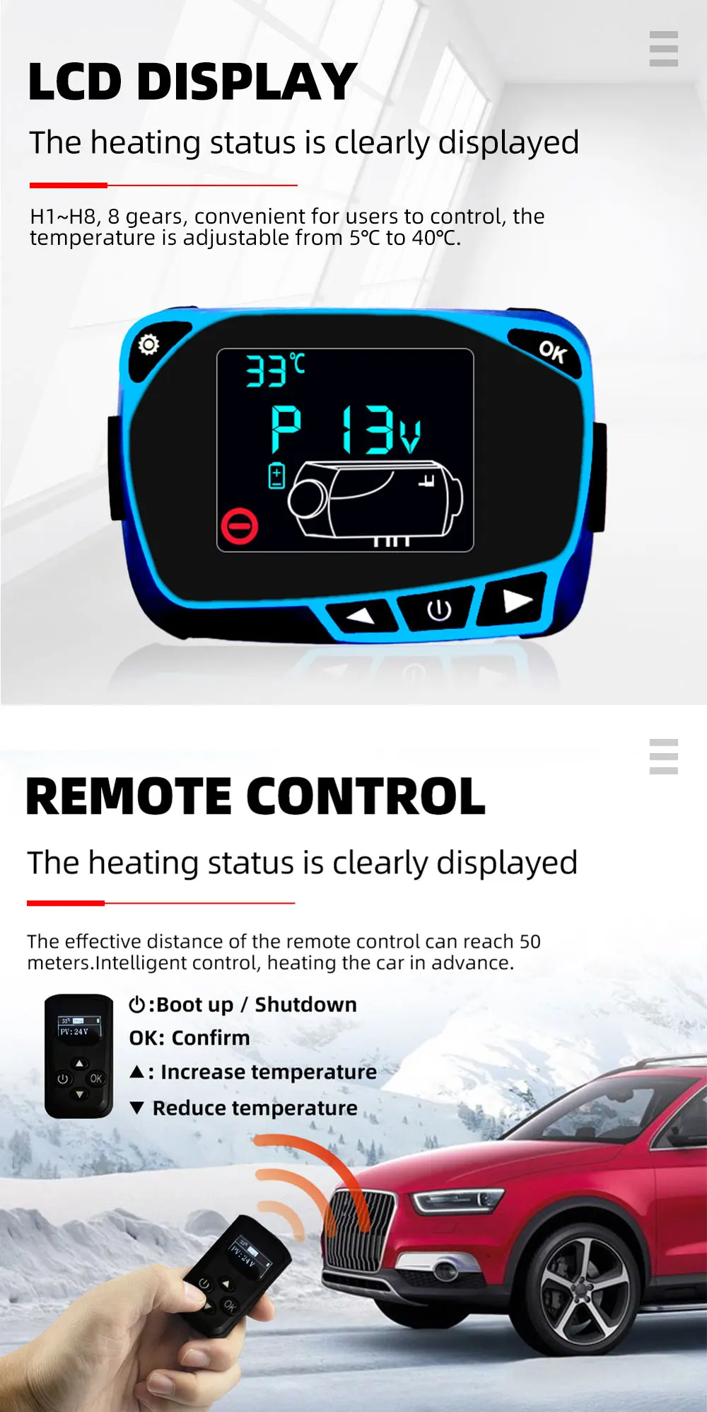 Features:1.No need to start the engine, remote control, heating the car engine and the car at any time.