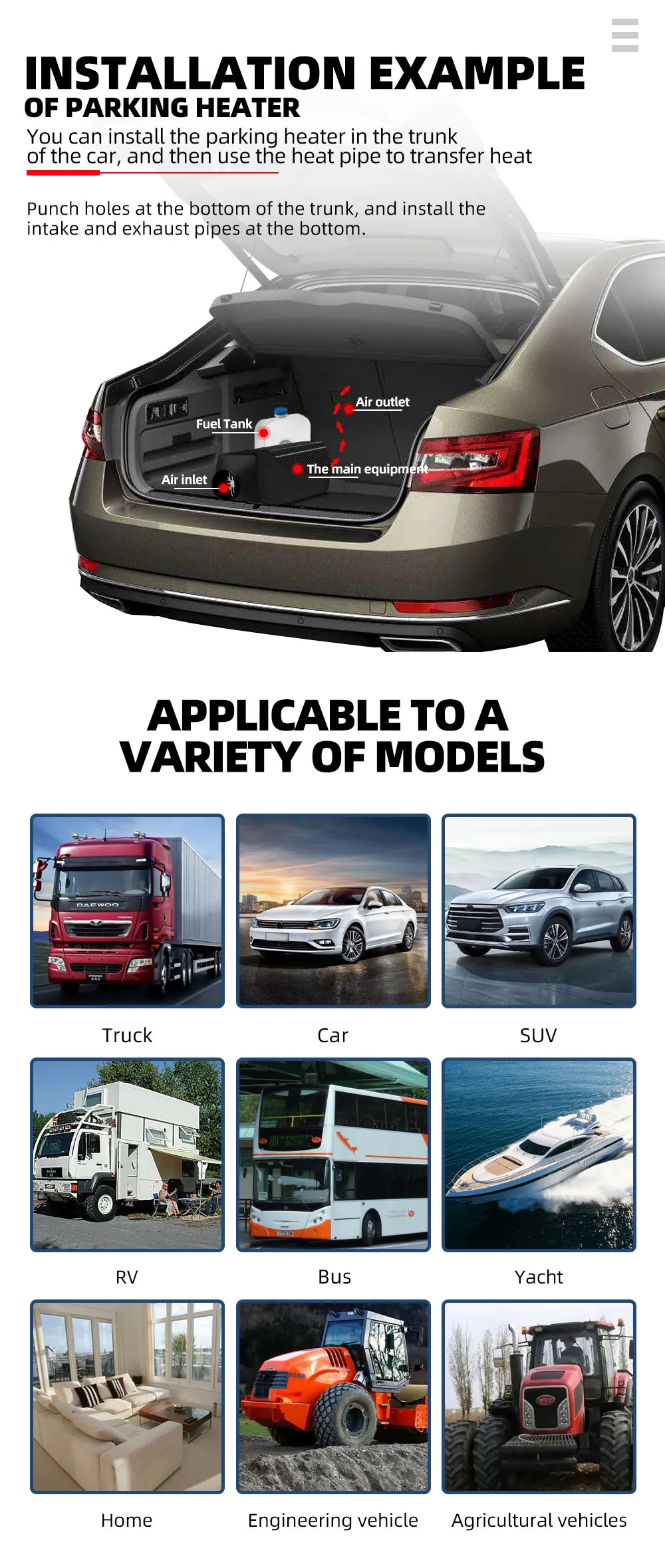 Related Products for Automobiles, Parts & Accessories and 12V 5~8KW Car Heater Air Diesel Heater Car Parking Heater With LCD Remote Control Monitor Switch For Truck RV Bus Boat Car