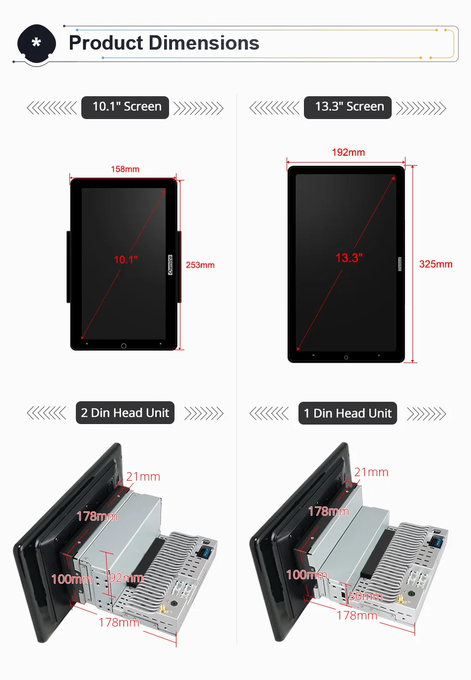 Related Products for Automobiles, Parts & Accessories and 13.3 inch Android 10.0 Ownice Auto Rotatable 10.1 inch 1920*1080 IPS Nano Universal Car Auto radio Multimedia Stereo Audio HDMI