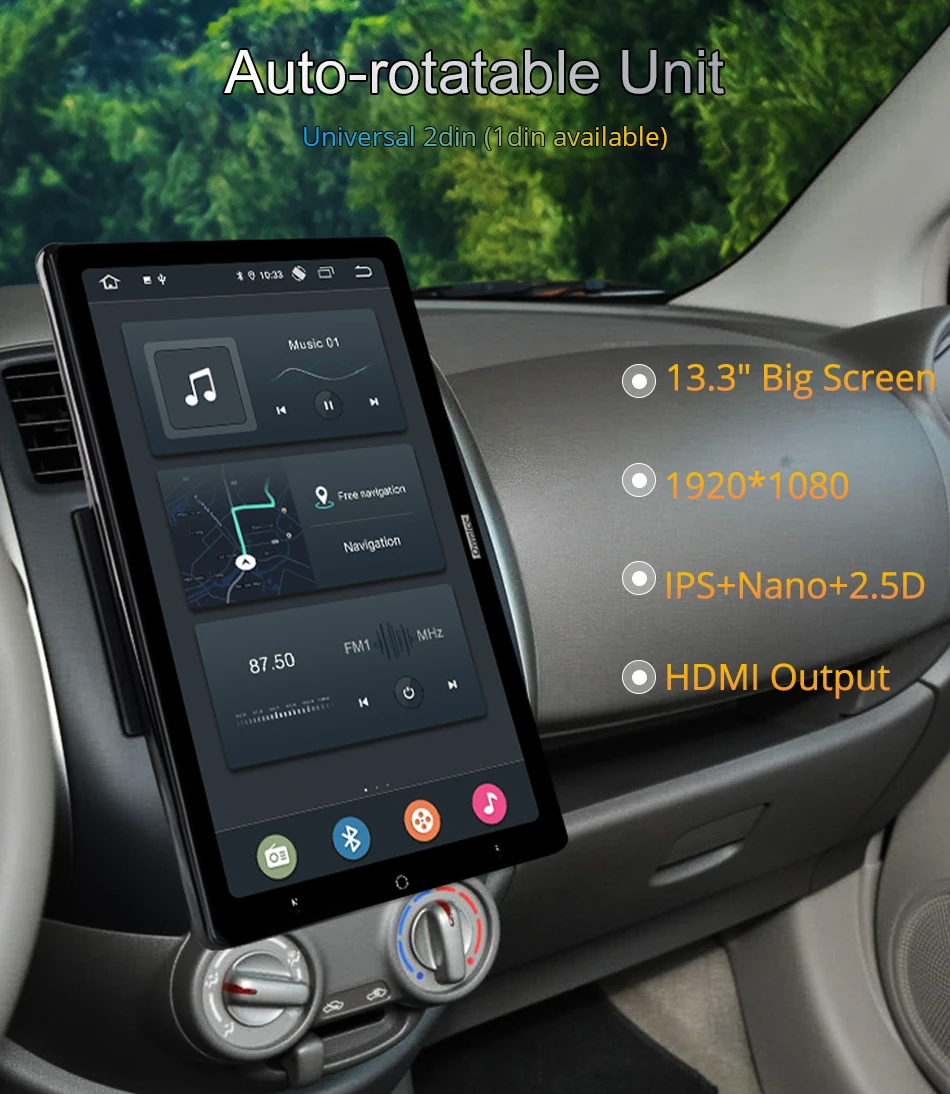 13.3 inch Android 10.0 Ownice Auto Rotatable 10.1 inch 1920*1080 IPS Nano Universal Car Auto radio Multimedia Stereo Audio HDMI