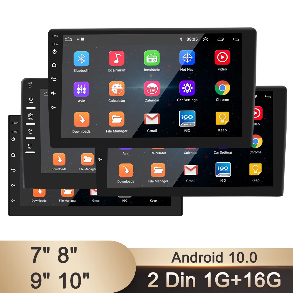 2 Din 7/8/9/10 Inch HD Touch Screen Car Radio GPS Navigation Android 10.0 MP5 Video Player FM Audio Bluetooth WiFi 1+16GB