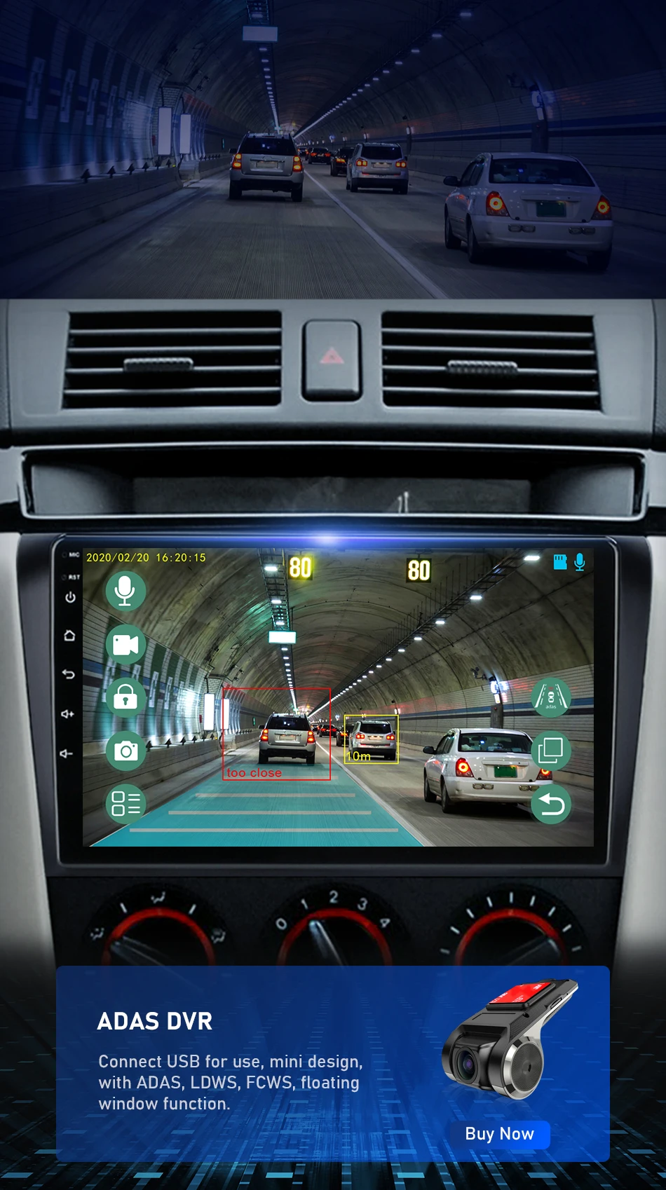 Supports connection to ADAS DVR. ADAS DVR has multiple built-in assistive driving technologies, inserting high-quality TF memory card to record every moment of your driving.