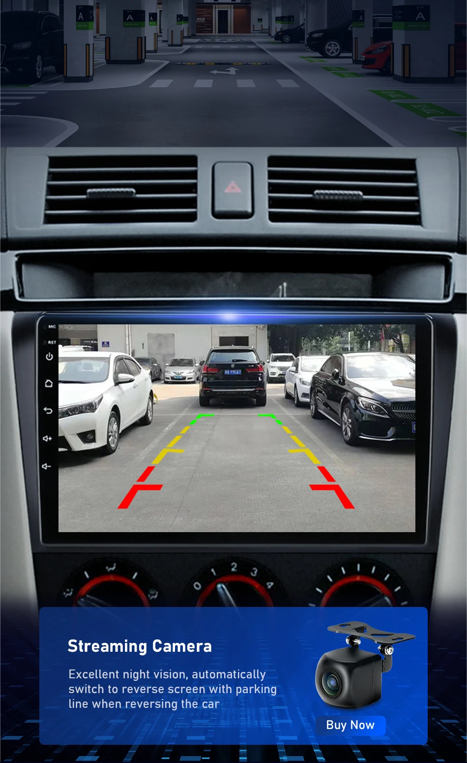 Supports reverse display. When the car is in the reverse mode, the radio will instantly switch to the screen at the back of the car to ensure your driving safety.
