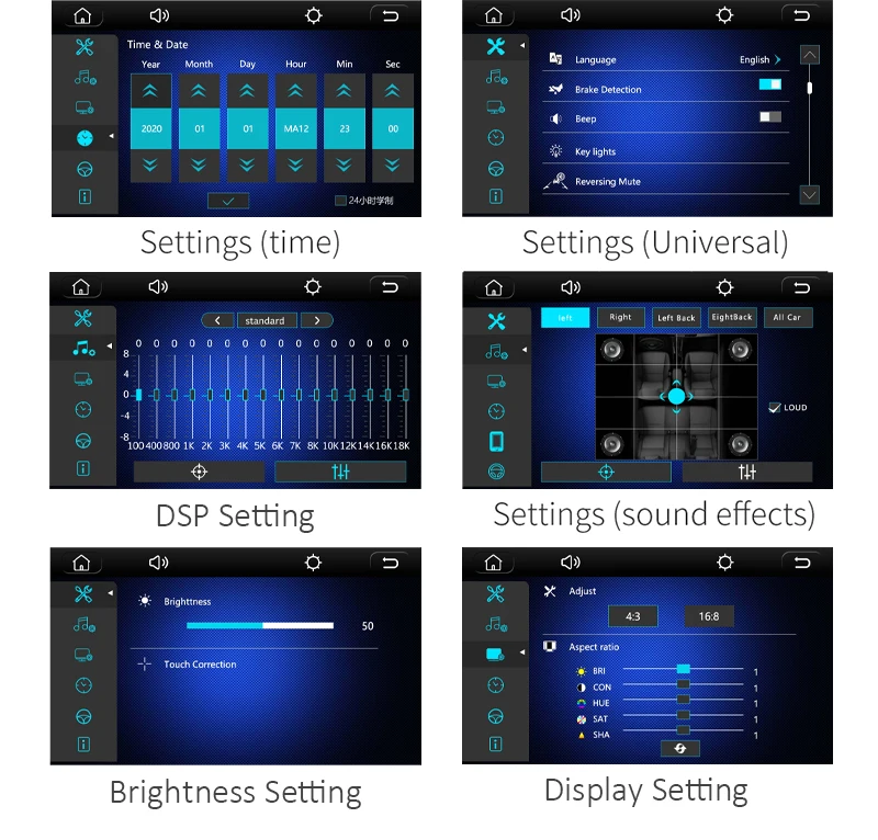 * Bass, treble, balance, fader, loudness, volume setting