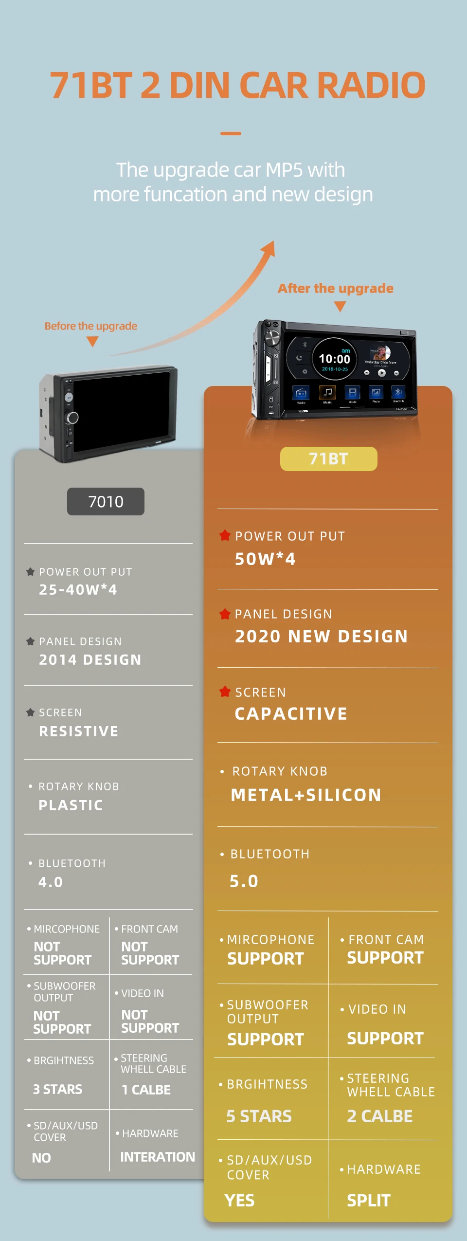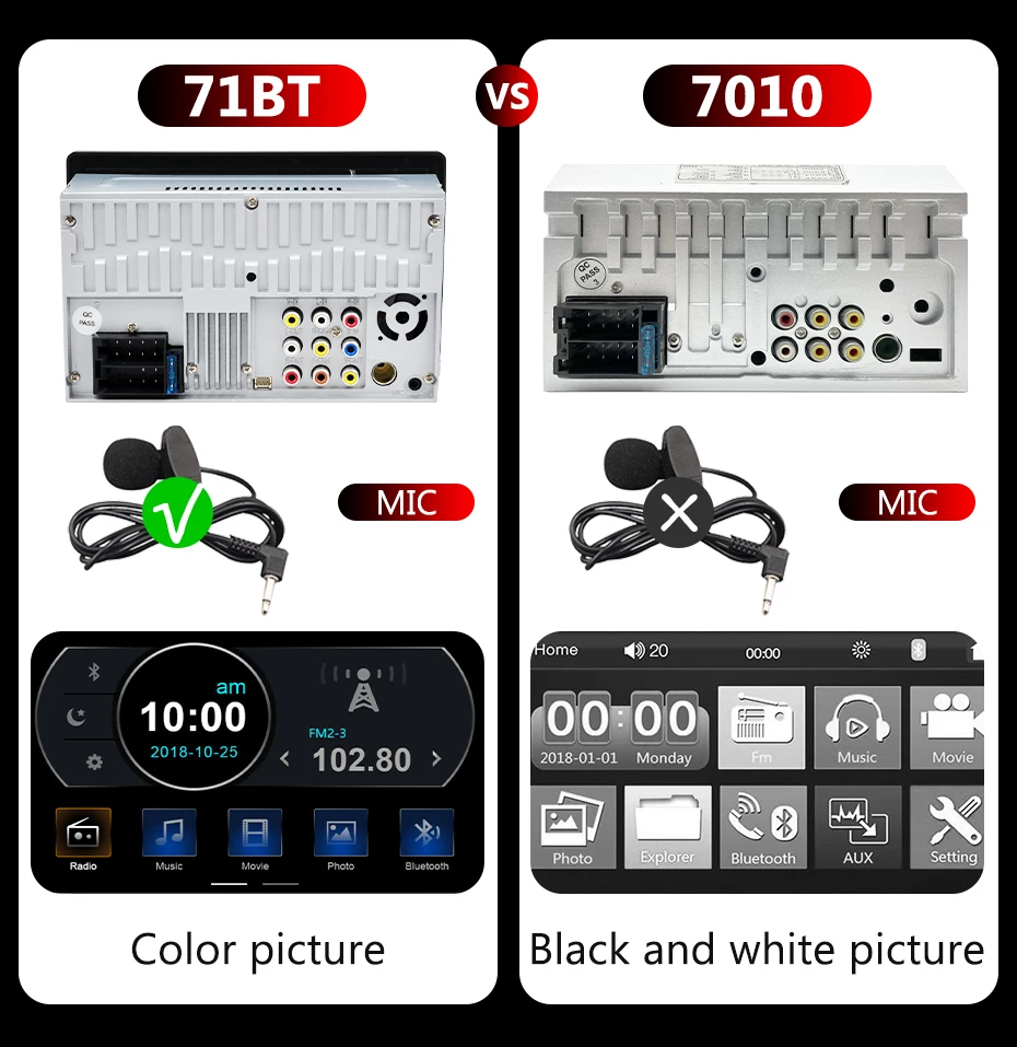 2 Din 7" HD Car Radio Multimedia Video Player MP5 Player Car MP3 Player Radio Bluetooth Fm Mirrolink Radio 71BTC Apple Carplay