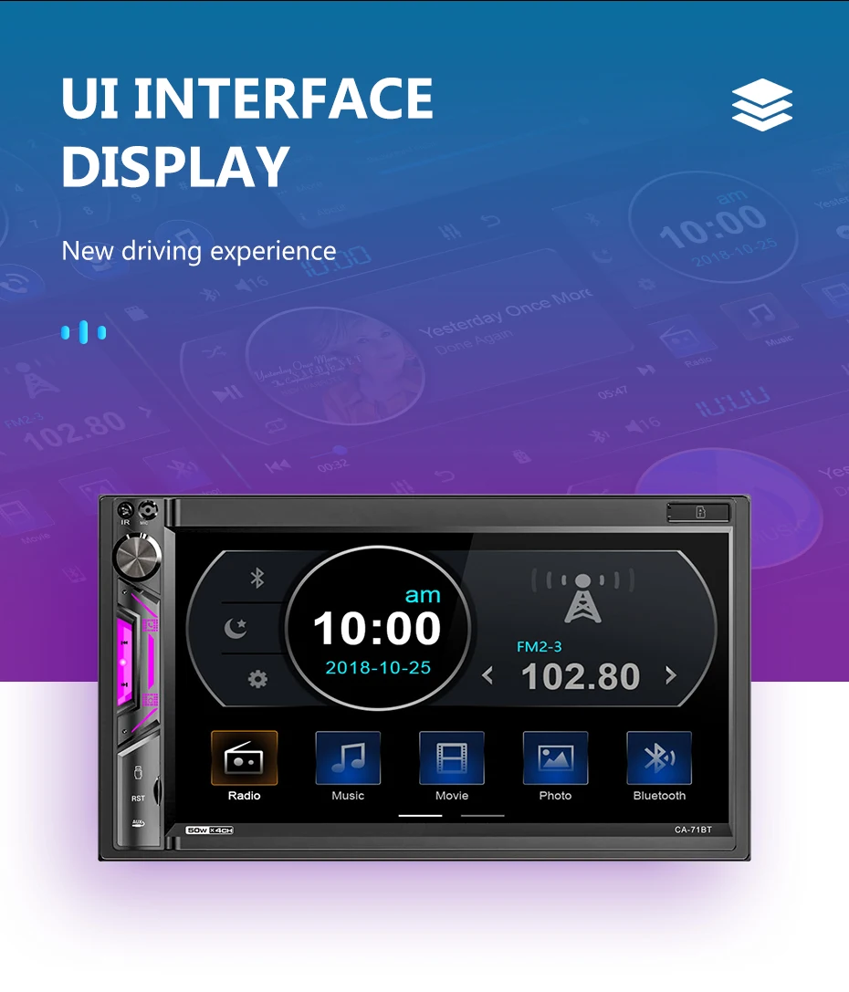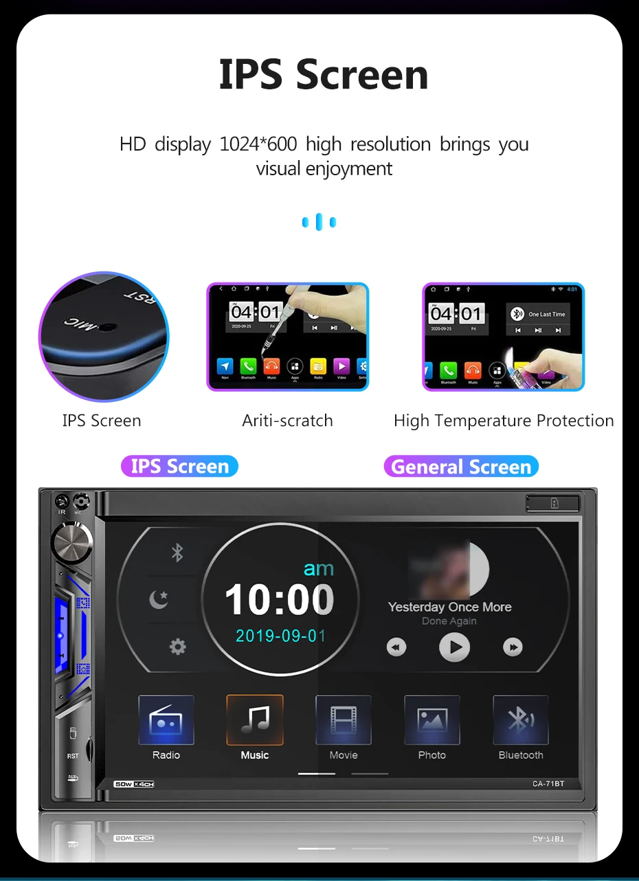 【 7 INCH HIGH RESOLUTION CAR STEREO】: aboutBit CA-71BT car radios with a large HD 1024*600 7'' lcd display and smart sense clear glass capactive touch screen provides a comfortable viewing experience while keeping all your favorite content within fingers reach.