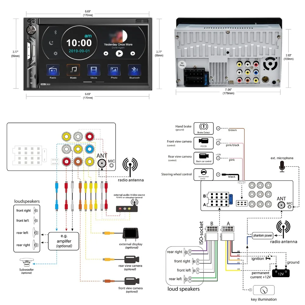 【FRONT & BACKUP CAMERA READY】:The inluded backup camera RCA input with 12V Auto-on Trigger and automatically display the reverse image on the screen to avoid any crash or accident. The bluetooth car stereo packaged with a HD night vision backup camera featured 170° ultra-wide viewing angle and a full waterproof.