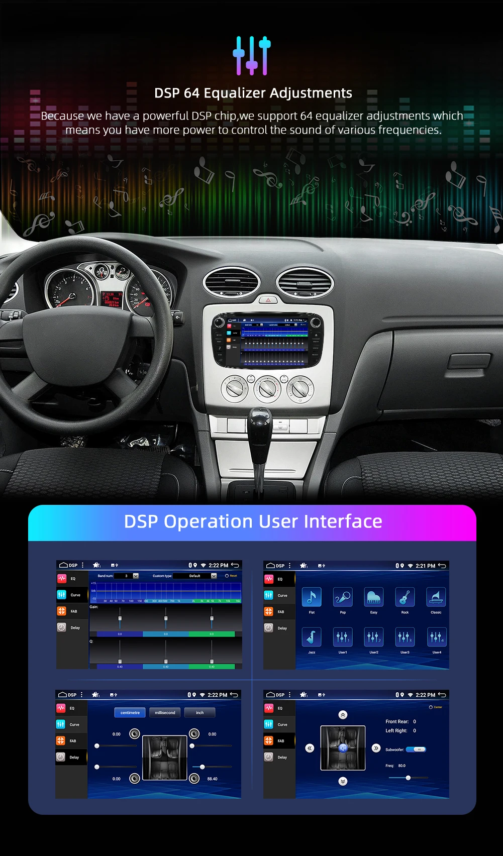 Digital DSP 30 EQ Android 10.0+Capacitive Screen+1024*600+Octa Core RK3399 2.0GHZ CPU + DDR3 4GB Flash + 64 GB Memory