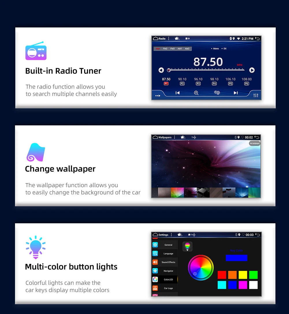 9:Support RDS.FM Frequency: 87.5-108MH AM frequency: 522-1710KHZ