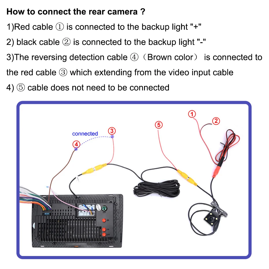 Note:The video port of rear camera must insert the ""CAMIN"" port of car radio.
