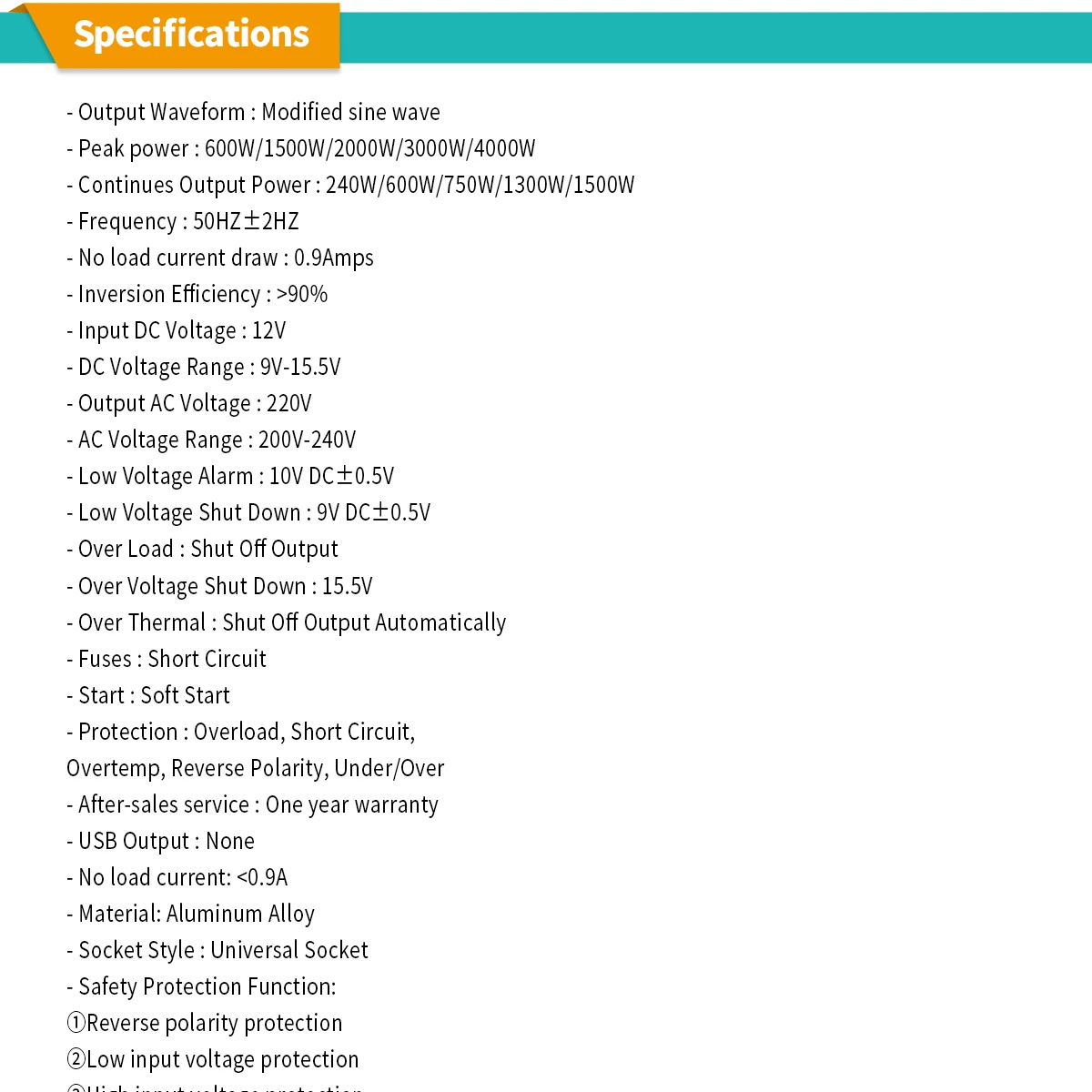 Related Products for Automobiles, Parts & Accessories and 2000W Peak Power Inverter DC 12V/24V to AC 220V Auto Portable Charger Converter Adapter Modified Sine Wave Universal Socket