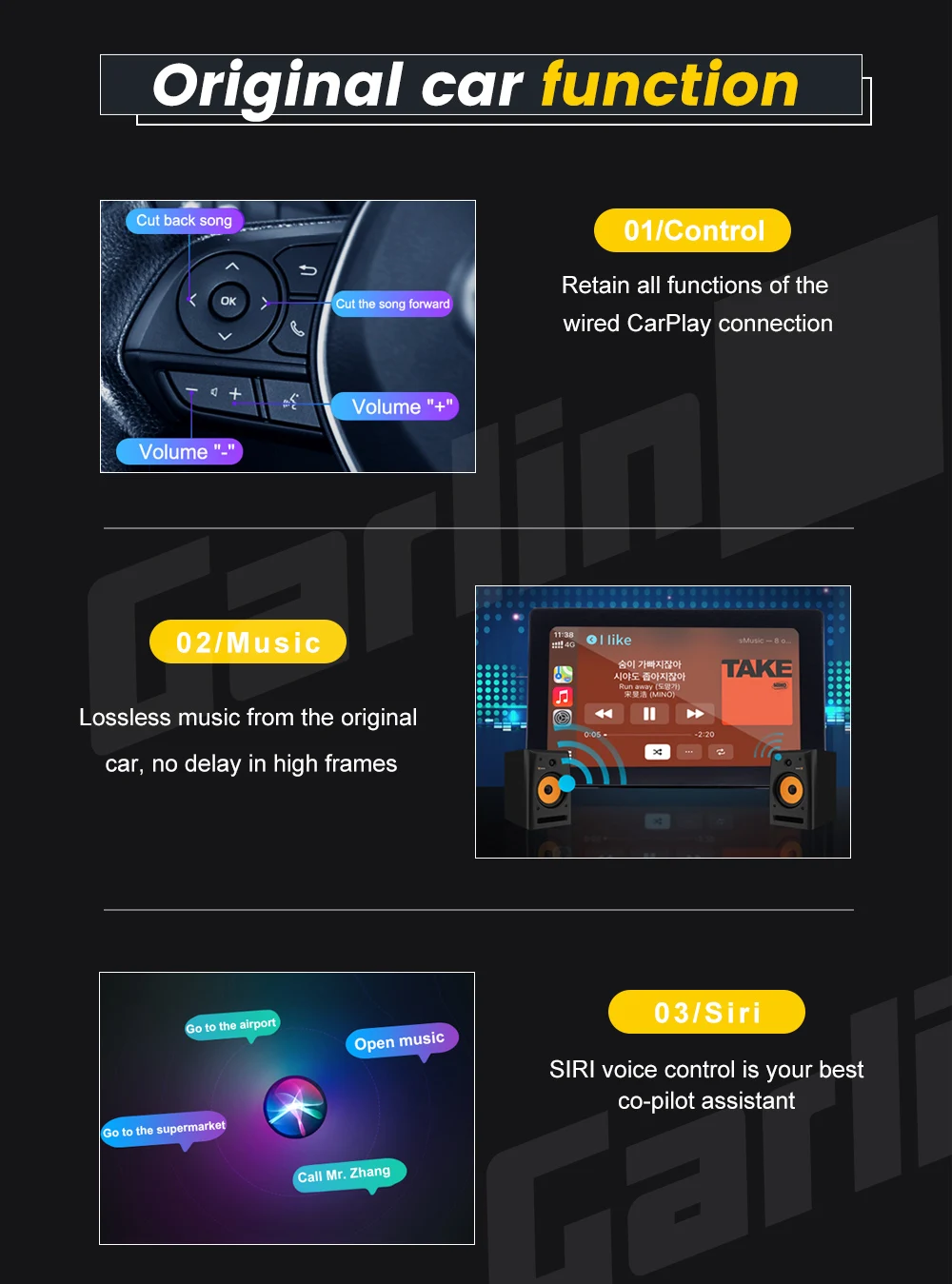 CarPlay:suitable for iPhone 5+ iOS 10+ & original car supports CarPlay agreement models