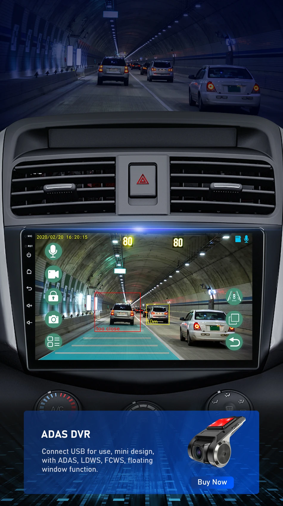 Supports connection to ADAS DVR. ADAS DVR has multiple built-in assistive driving technologies, inserting high-quality TF memory card to record every moment of your driving.