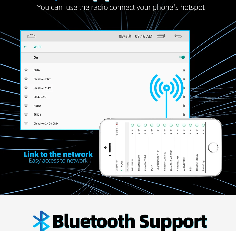 RAM 2G+ ROM 16G: FM, RDS,ASP, Bluetooth, GPS, Wifi