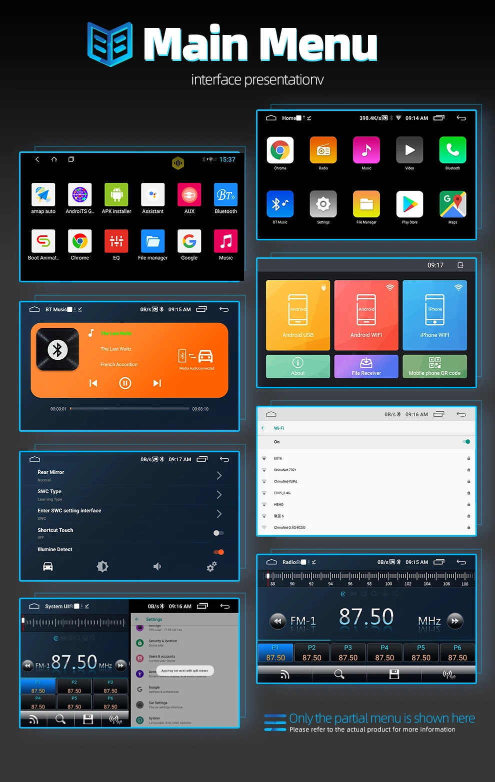 RAM 2G+ ROM 16G CP: FM, RDS,ASP, Bluetooth, GPS, Wifi,Carplay