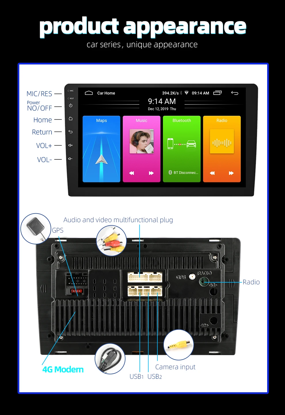 2Din Car Radio 10″ Android Multimedia Player GPS WIFI Bluetooth Player for Toyota Volkswagen Hyundai Kia Suzuki Autoradio