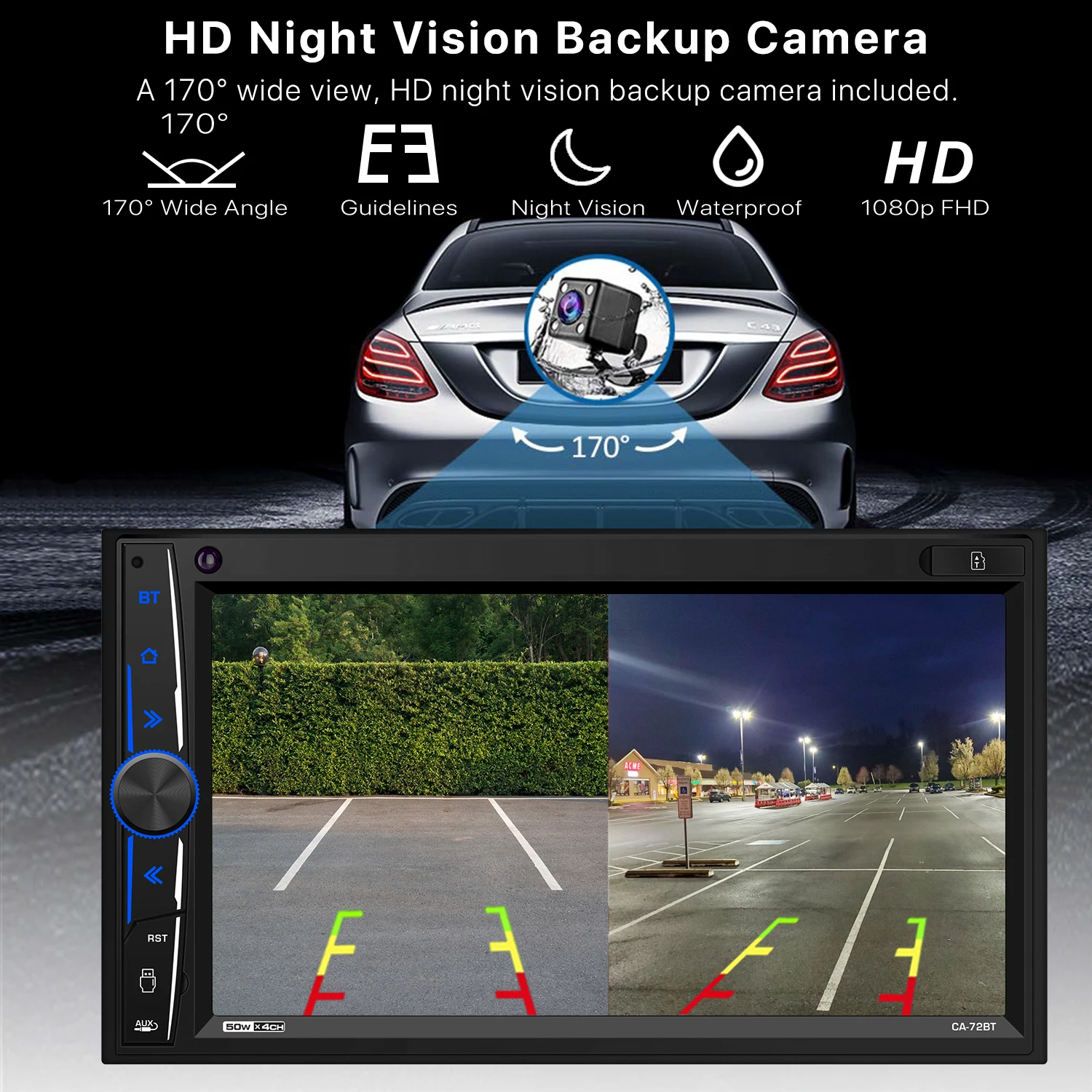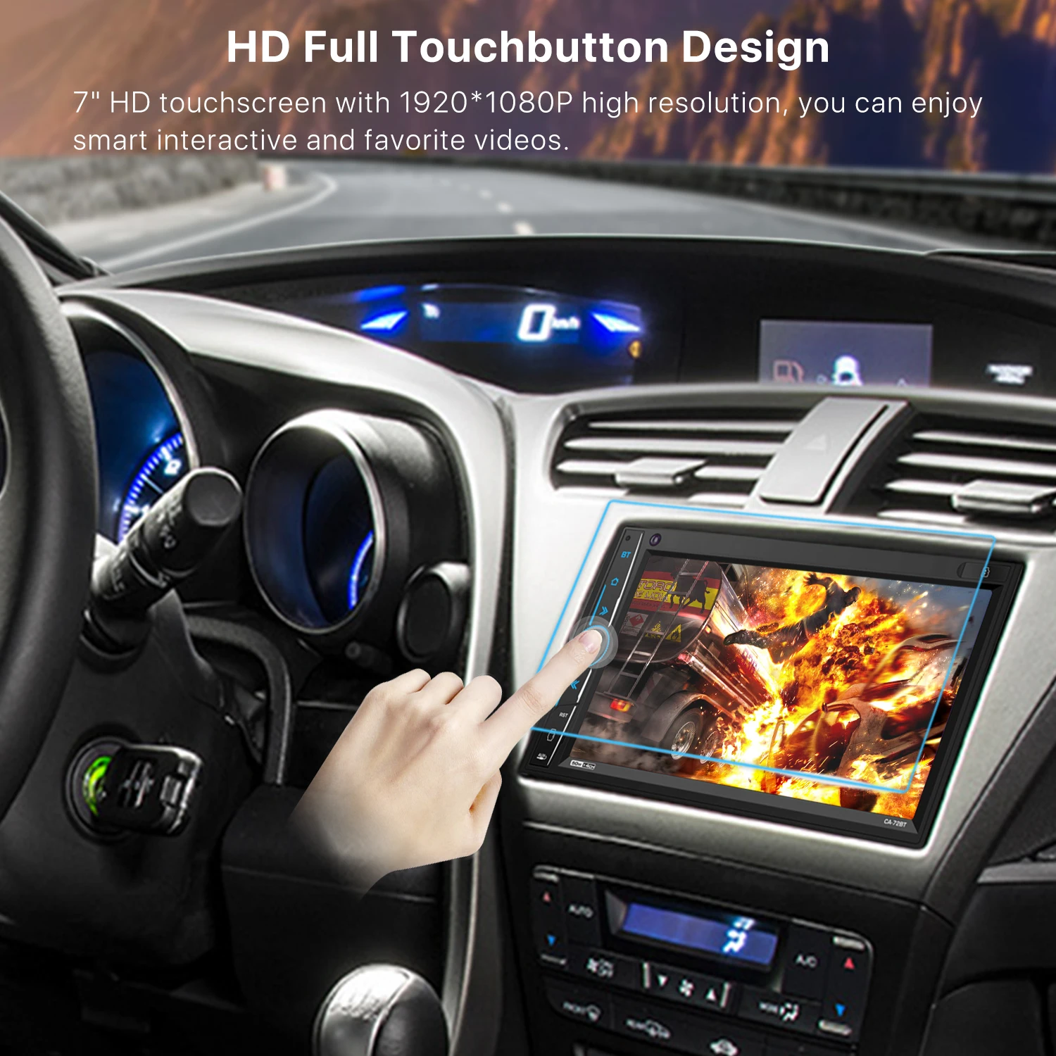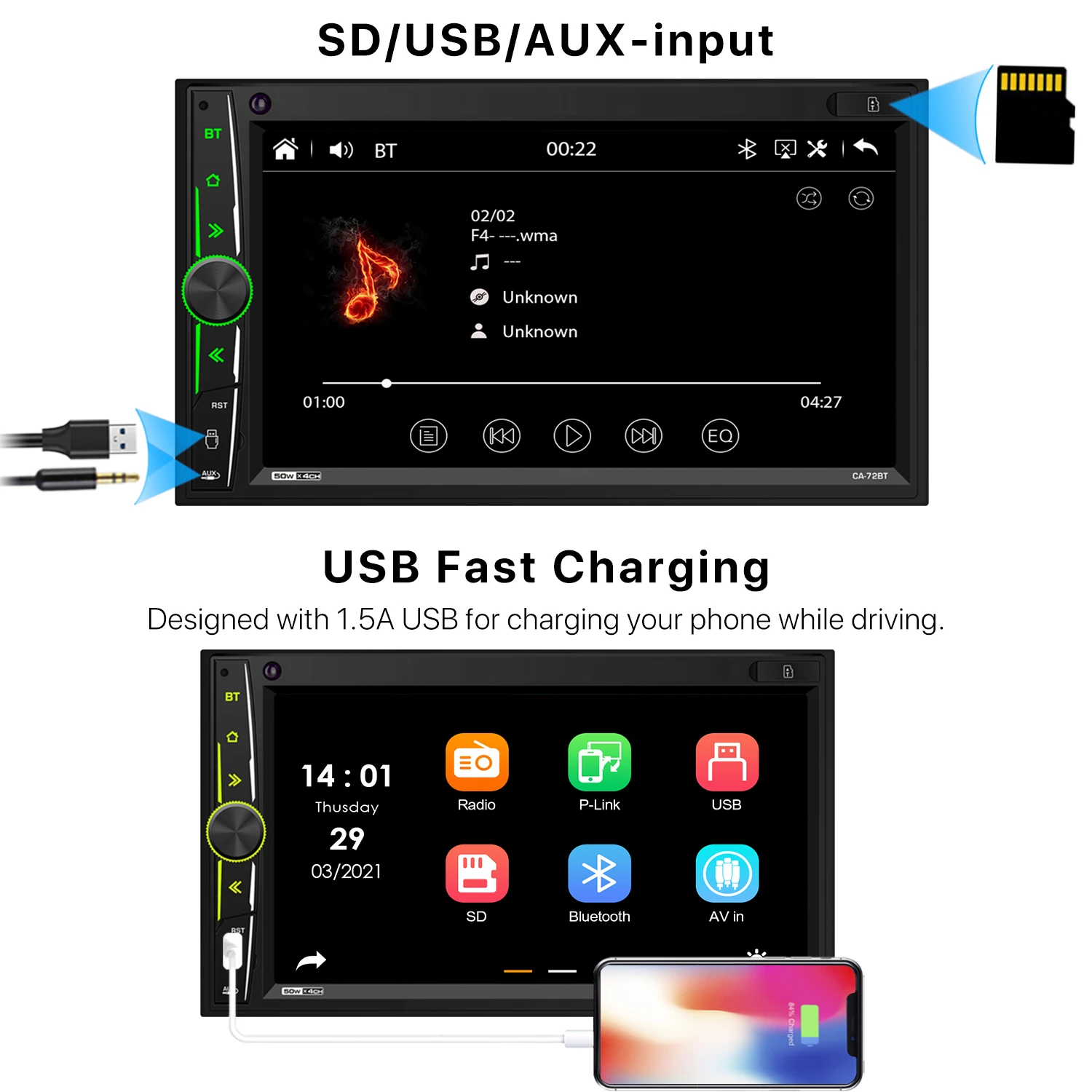 Checkout this double-din 72BTC / CA7023, is touchscreen ,bluetooth Apple CarPlay ,with multi-color illumination and usb ,sd , av ,rear camera ,and steering wheel control inputs . it also features front , rear & surwoofer .amp outputs