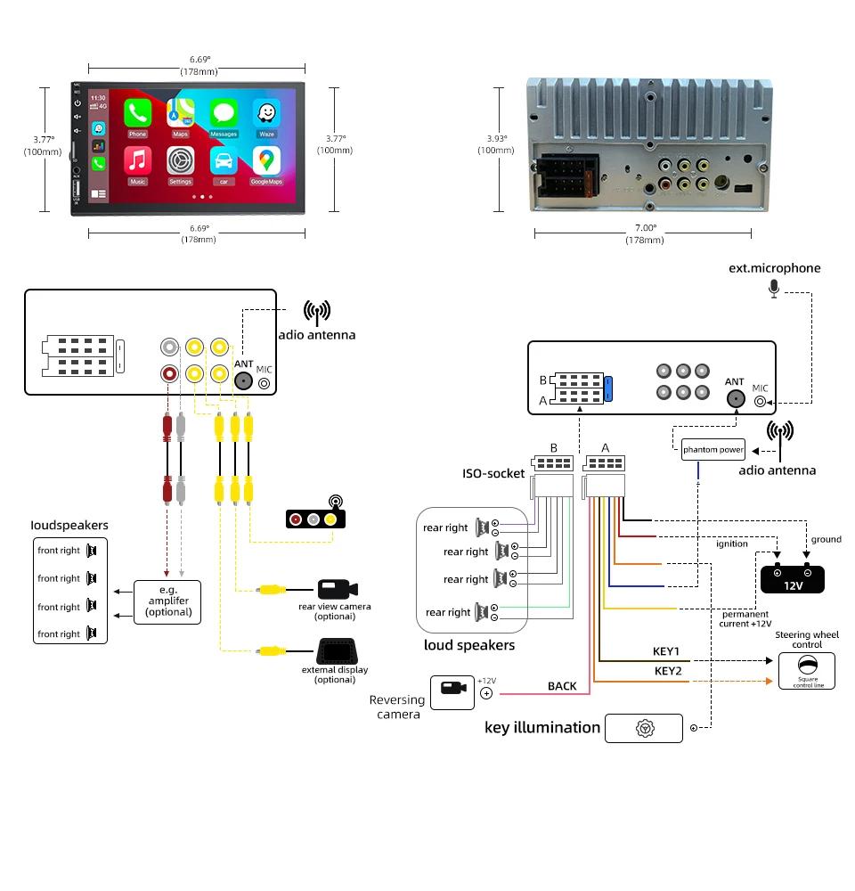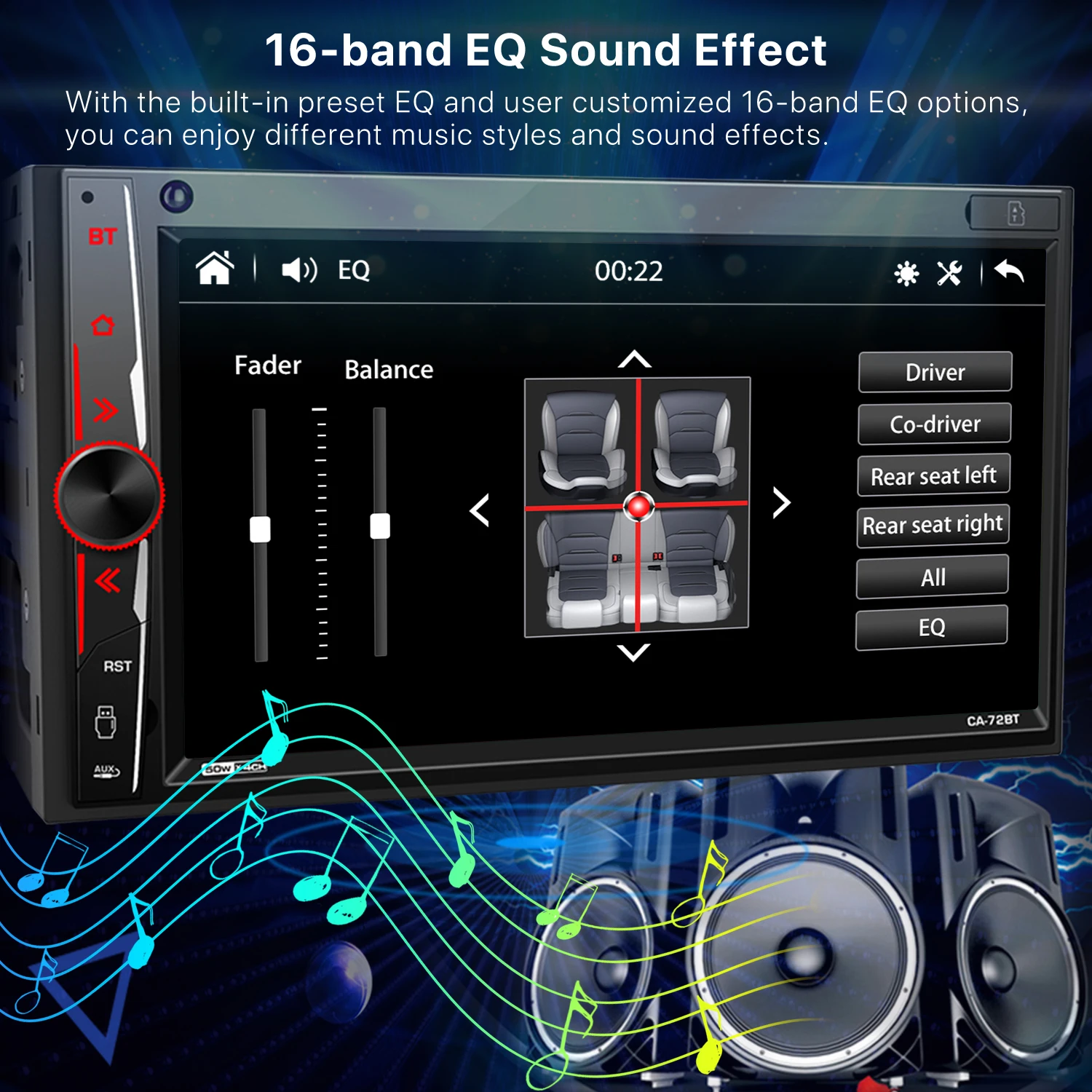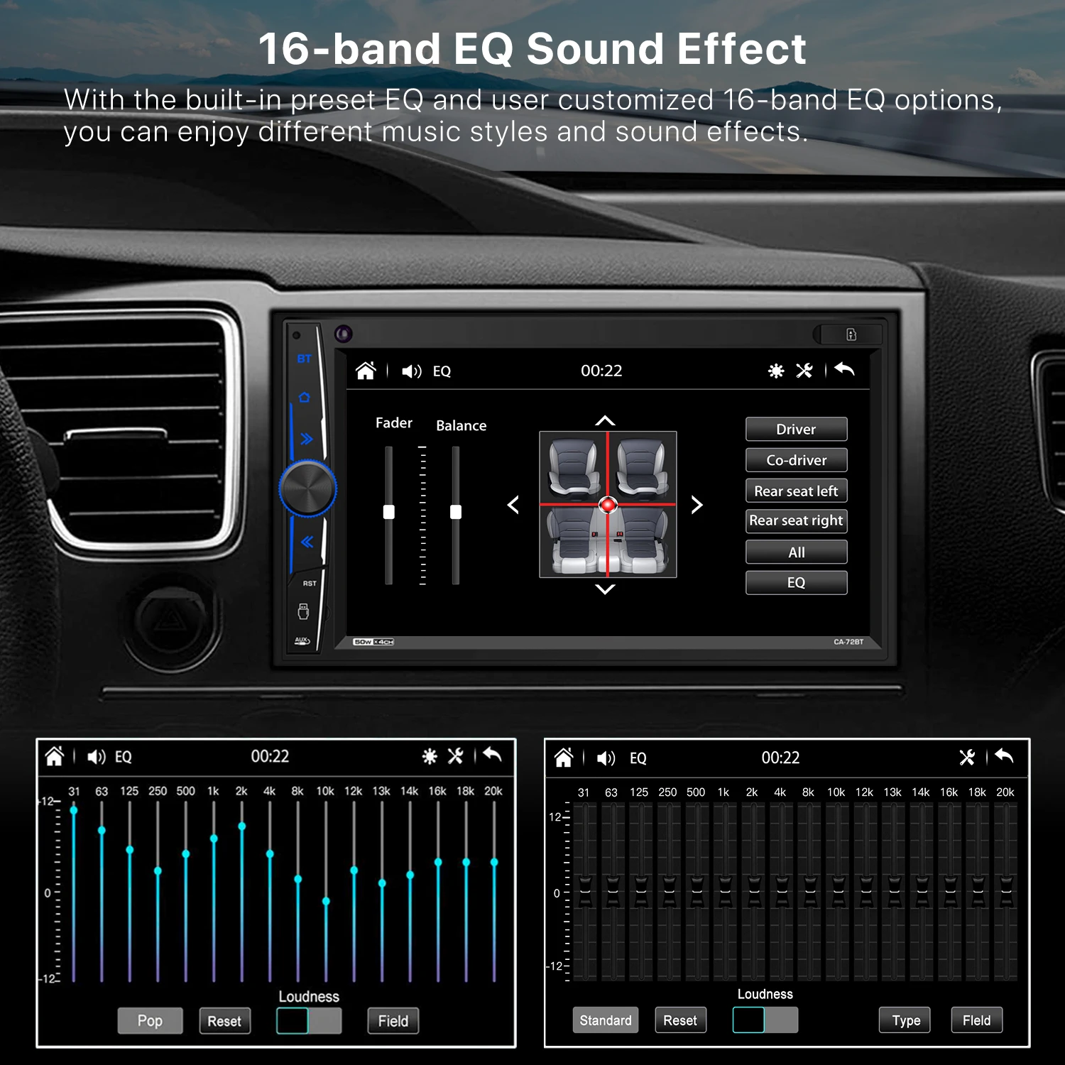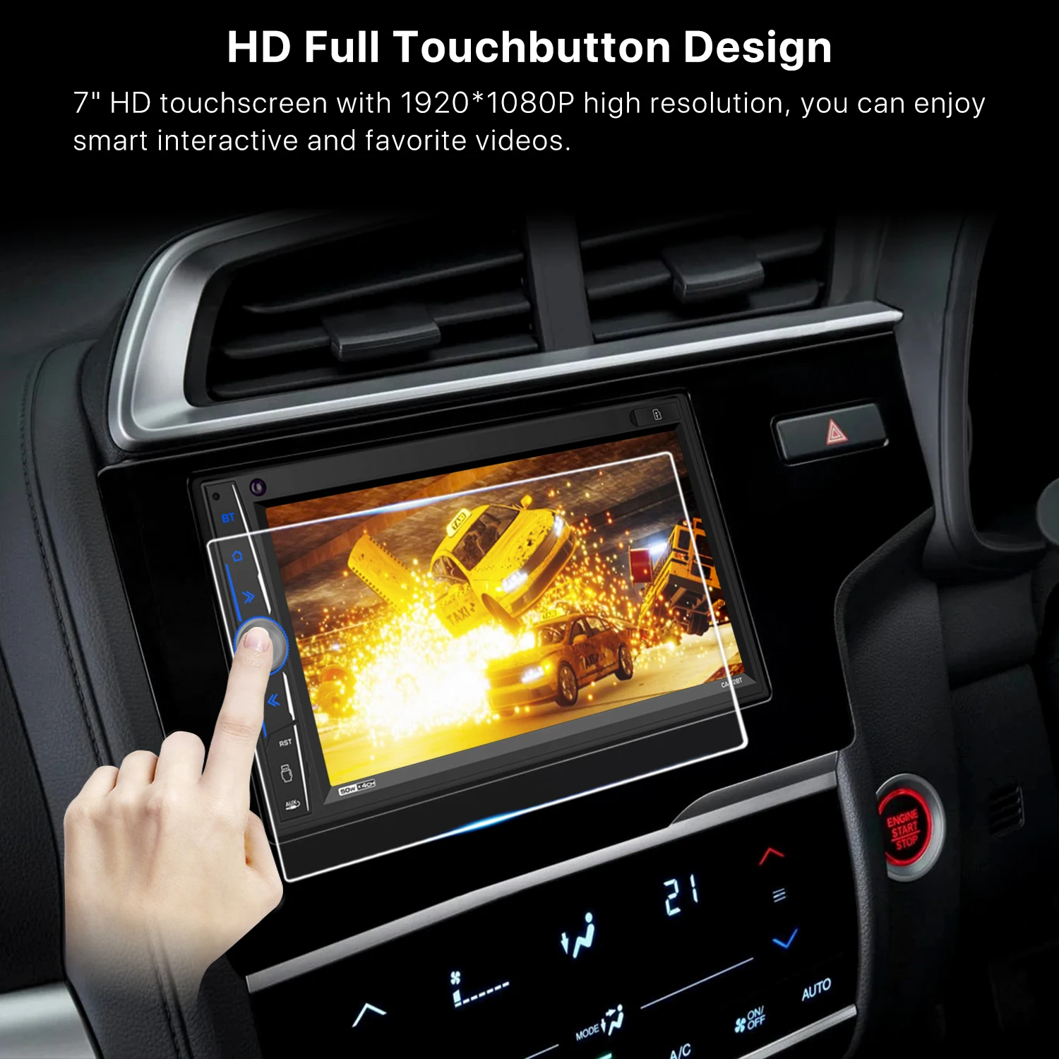 Checkout this double-din 72BTC / CA7023, is touchscreen ,bluetooth Apple CarPlay ,with multi-color illumination and usb ,sd , av ,rear camera ,and steering wheel control inputs . it also features front , rear & surwoofer .amp outputs