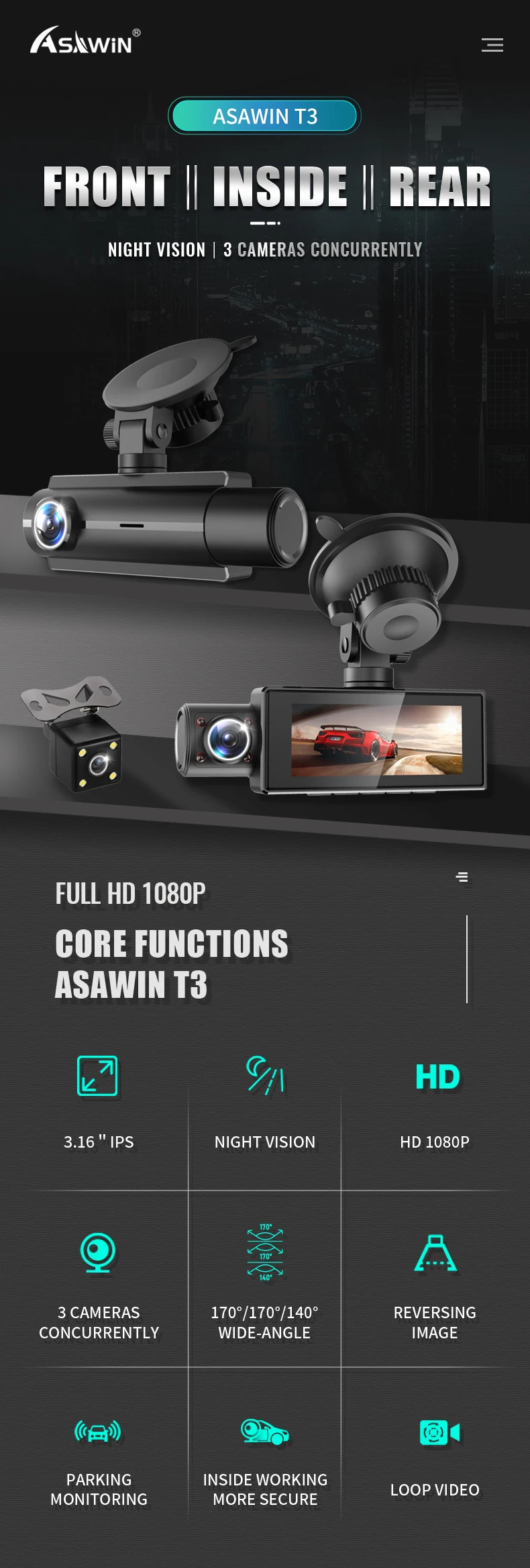Buy 3 Ways Dash Cam for Car DVR 1080P Camera 3 Lens Night Vision 3.16 Inch Ips Screen G-sensor Reversing Image Right Here and Right Now, You will save money, do not let yourself be disappointed the next day, and immediately have 3 Ways Dash Cam for Car DVR 1080P Camera 3 Lens Night Vision 3.16 Inch Ips Screen G-sensor Reversing Image before the product is sold out.