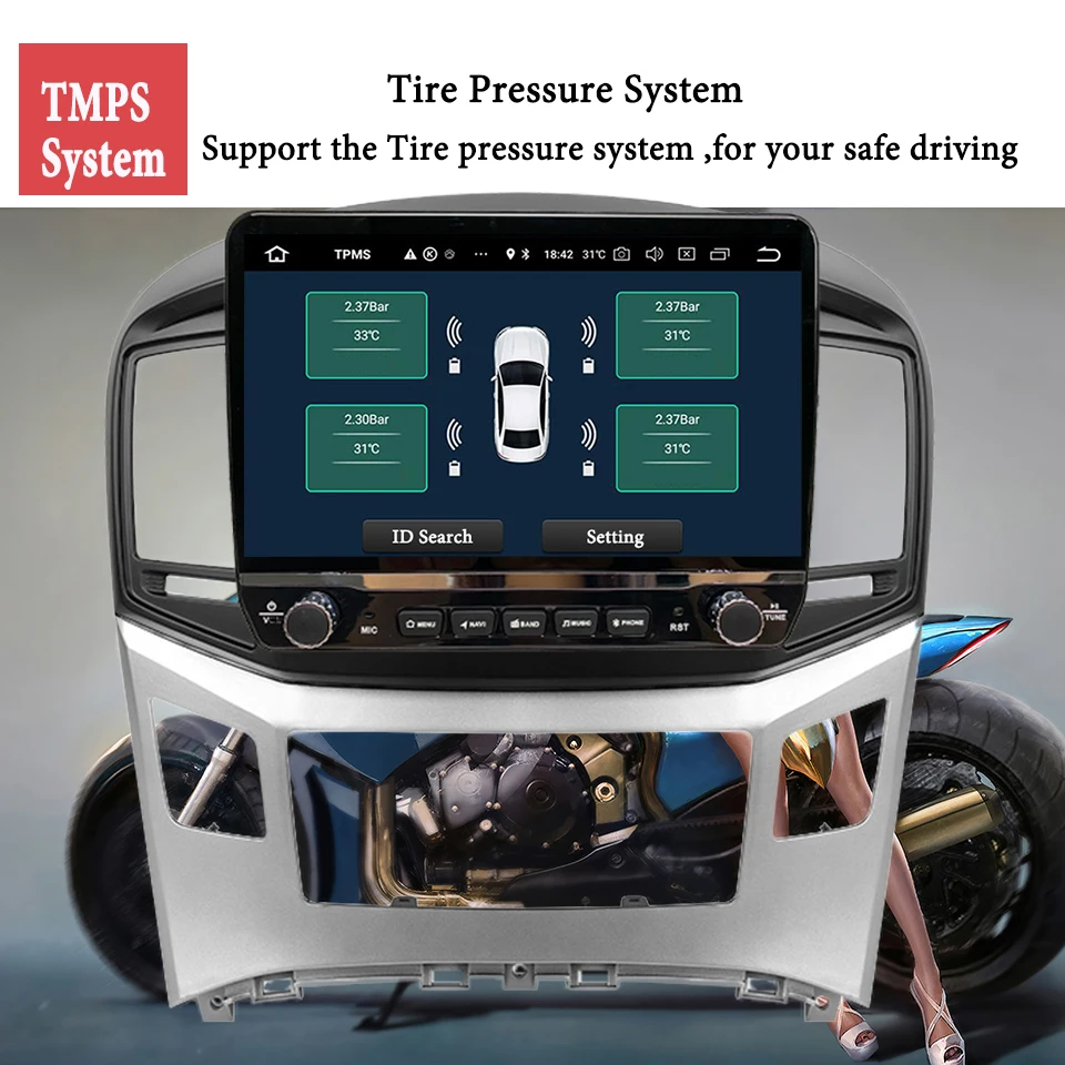 Real-time displays 4 tires' pressure and temperature, once the tire pressure or temperature limit is exceeded, alarm will be triggered immediately.