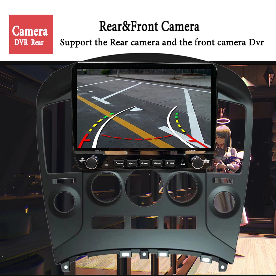 When the car in Reverse Gear, this car DVD will automatically switch to the back-up camera image view with parking line. (presents the back-up camera as a gift for free)