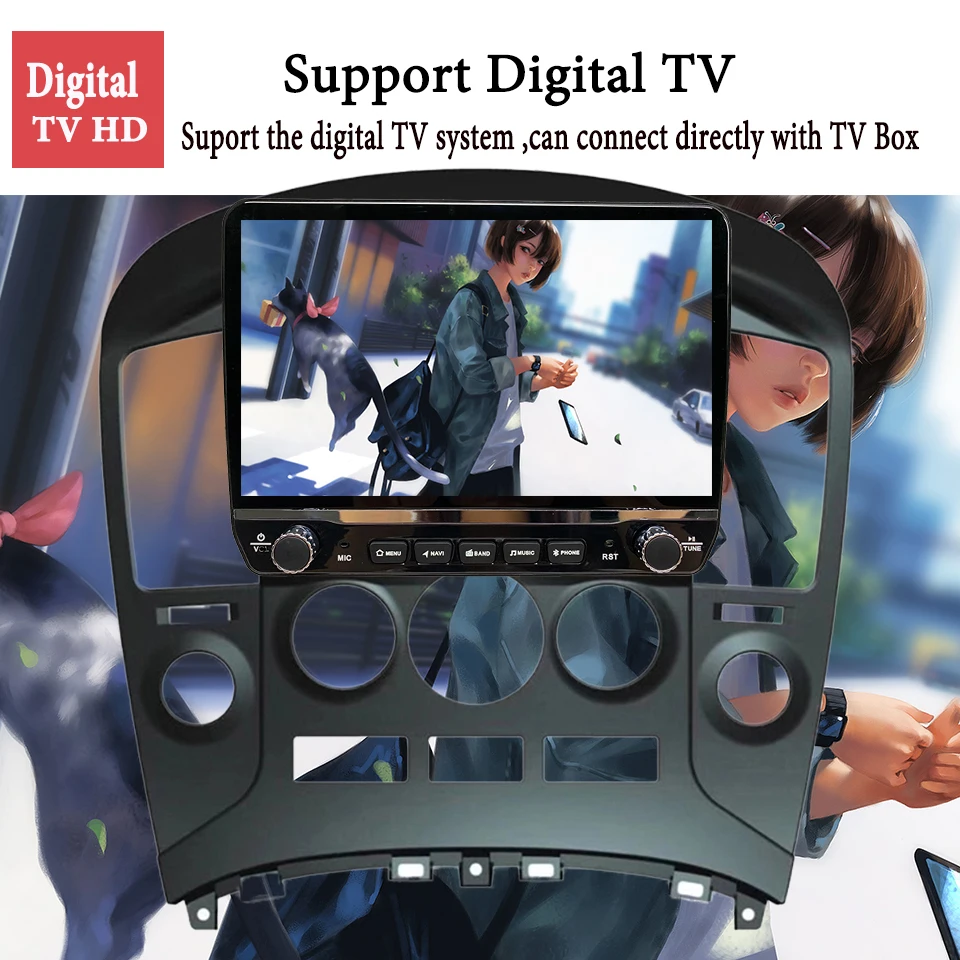 Device support Digital TV ,you can use it connect with TV box to enjoy your good driving.