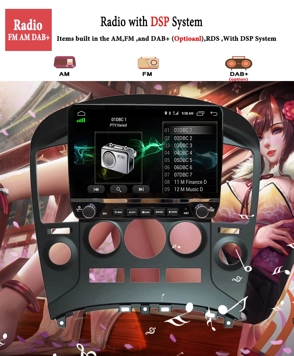 Radio with RDS ,built in the FM AM and supprot connect with the DAB+,the DSP system will offer quality stereo music and voice for your need.