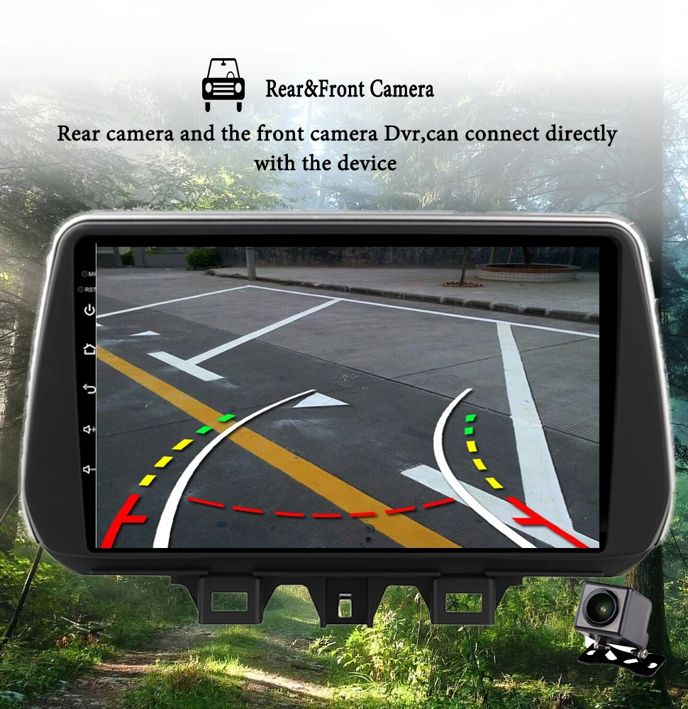 When the car in Reverse Gear, this car DVD will automatically switch to the back-up camera image view with parking line. (presents the back-up camera as a gift for free)