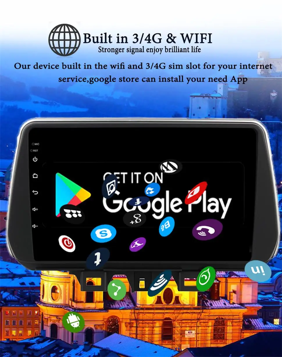 Device Built in 3/4G Sim slot and the wifi antenna ,you can use it download your need app from the google store.