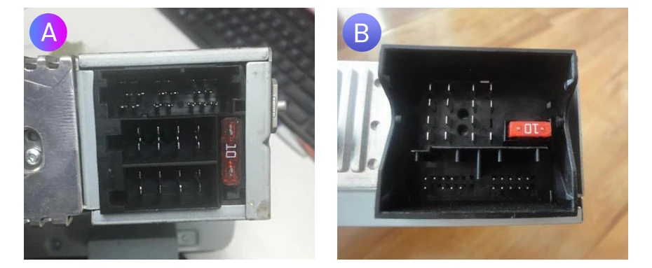 1. Your car does not have a steering wheel control button/the interface on the back of the radio is the same as picture A, you need to buy A, the power cable is suitable for your car.