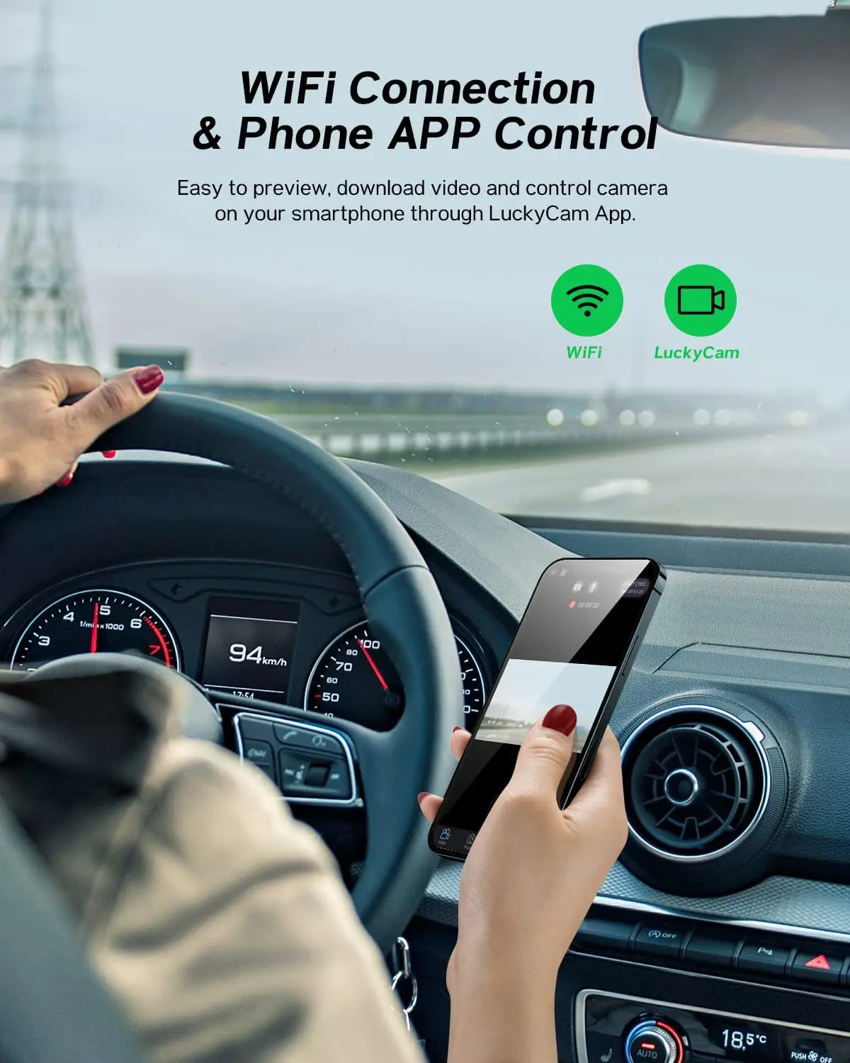 4K Dash Cam Dual Lens UHD RecordingCar Camera DVR Night Vision GPS Wi-Fi G-Sensor Motion Detection Car Video Recorder 1080P Rear