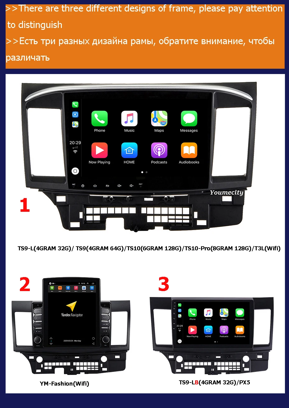 >>TS9-LB(4GRAM 32G)=8 Cores Processors( 6X ARM Cortex-A55@1820MHz+2X ARM Cortex-A75@1820MHz)+4G RAM+32G ROM+DSP*48EQ+Support Install 4G SIM Card+Wifi+AHD Reverse Camera Gift+Built-In Carplay+Built-In Android Auto+Customized Picture Start Logo+Universal Frame/