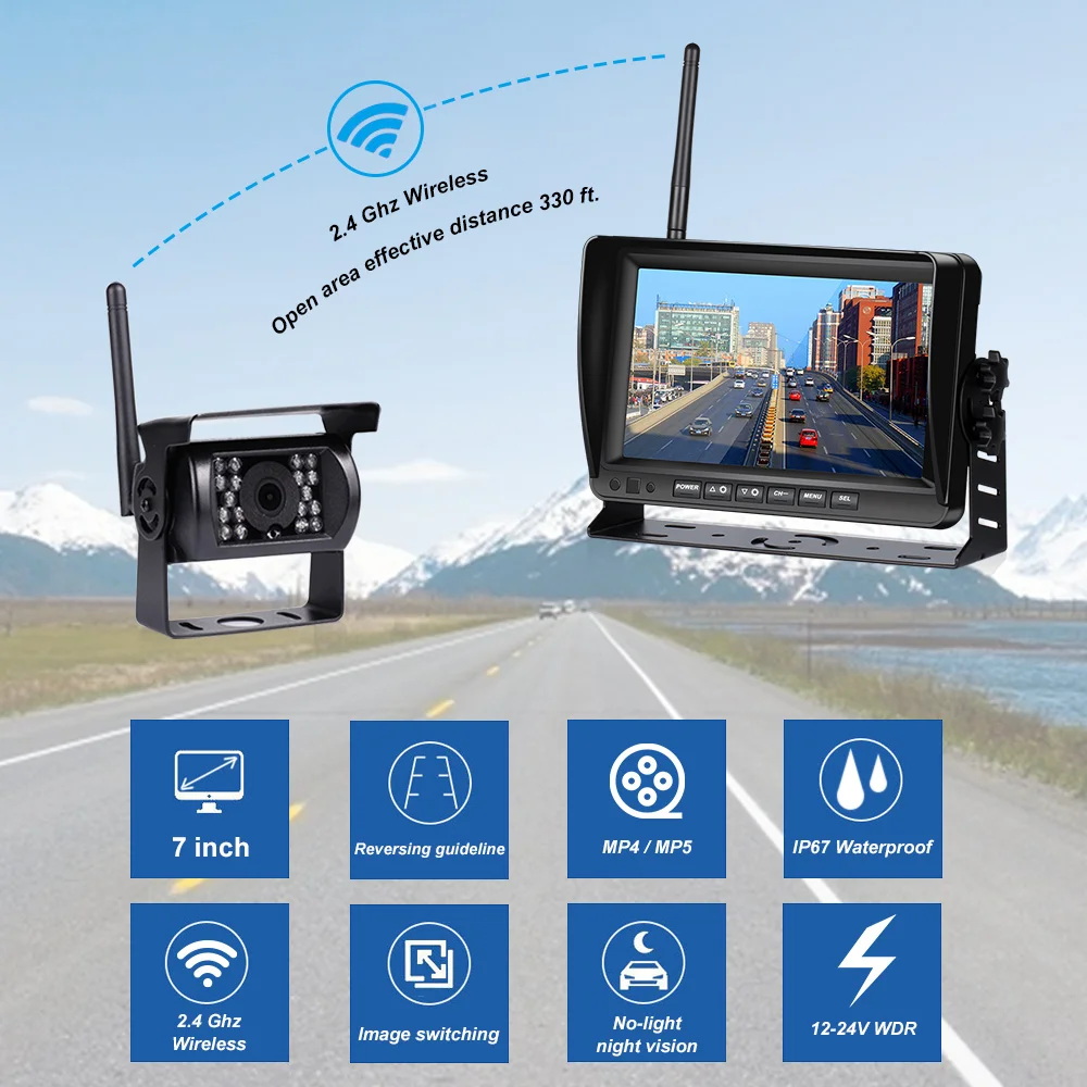7 inch Wireless Car Monitor Truck Screen CMOS IR Night Vision Reverse Backup Wifi Camera Parking System Display for Car