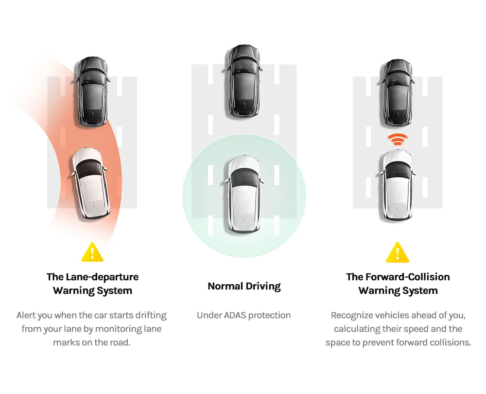 The ADAS will detects your surroundings and uses voice alerts to warn you of safety problems.