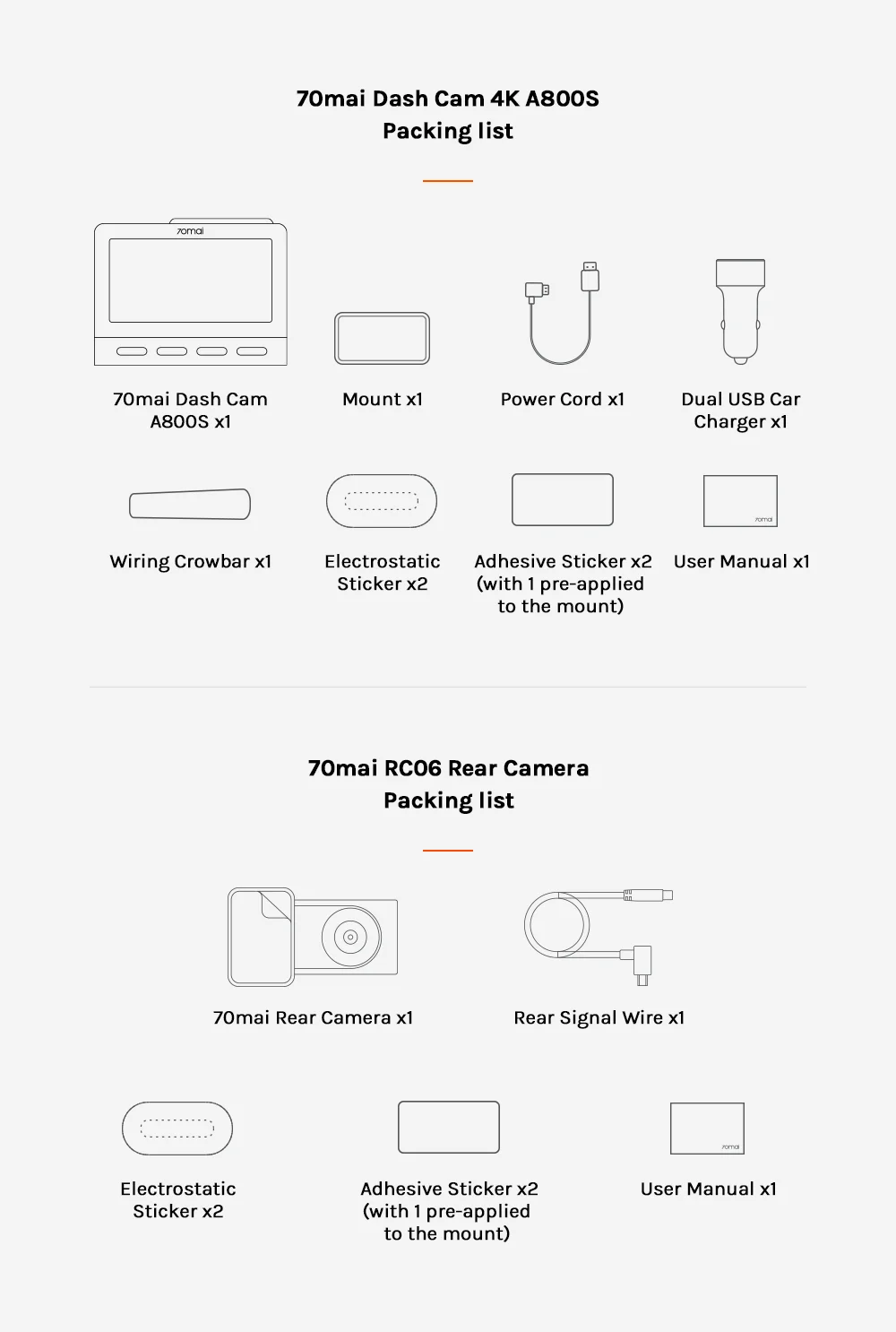 Related Products for Automobiles, Parts & Accessories and 70mai A800S 4K Dash Cam Built-in GPS Front & Rear Cam Dual Vision ADAS UHD Image SONY IMX415 140FOV 24H Parking Monitior