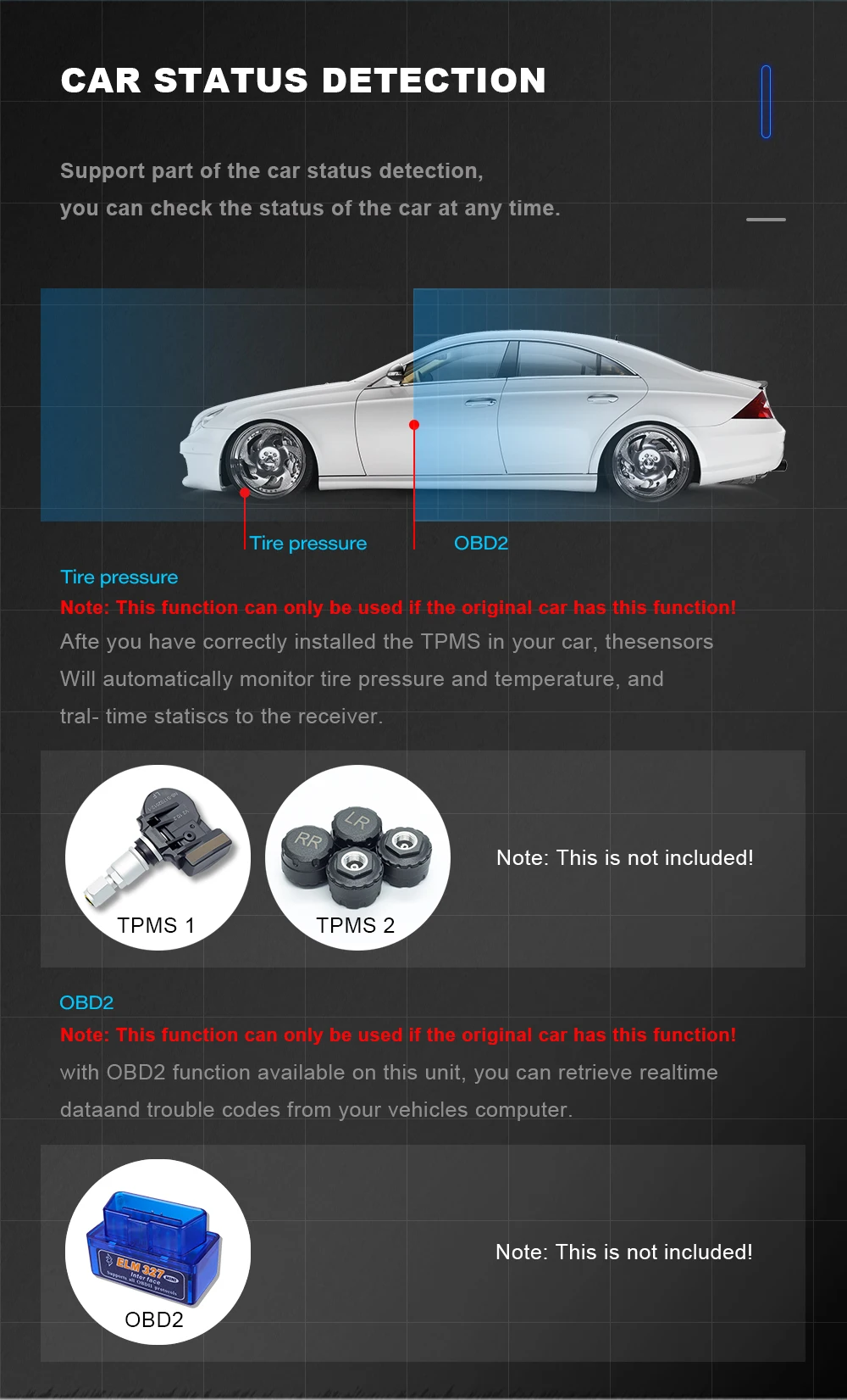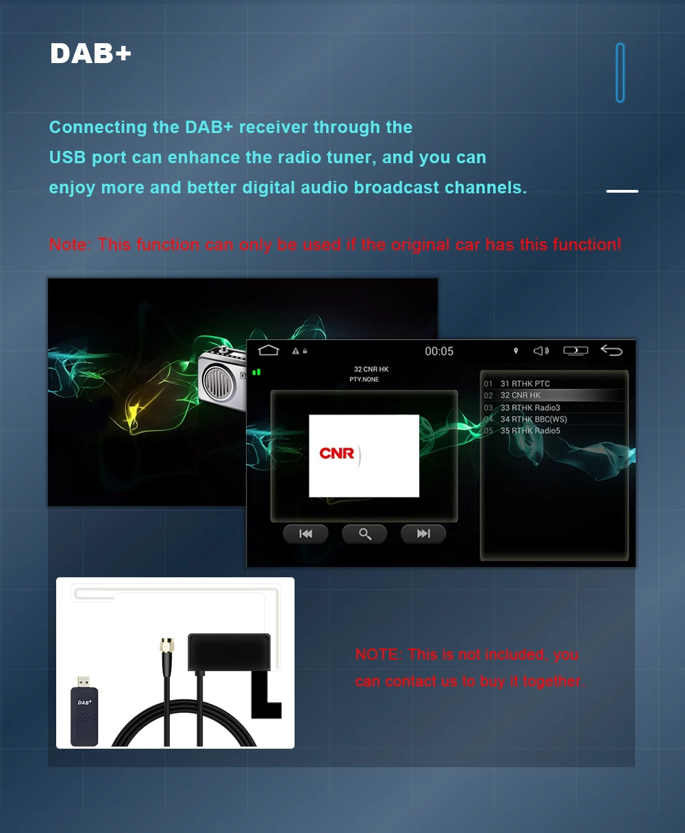 If your car does not have audio AUX input, you need to order an FM transmitter to help with installation, the speaker of your original car can make sound.